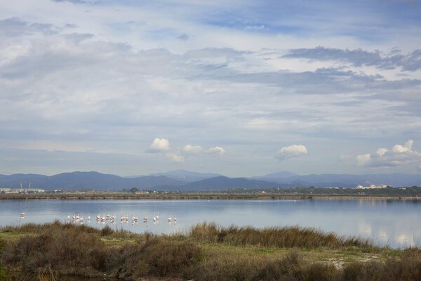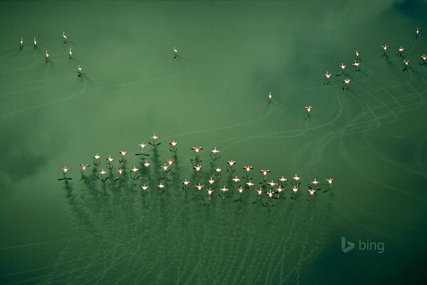 Dziewczyna w sukience biegnie za czerwonymi ptakami