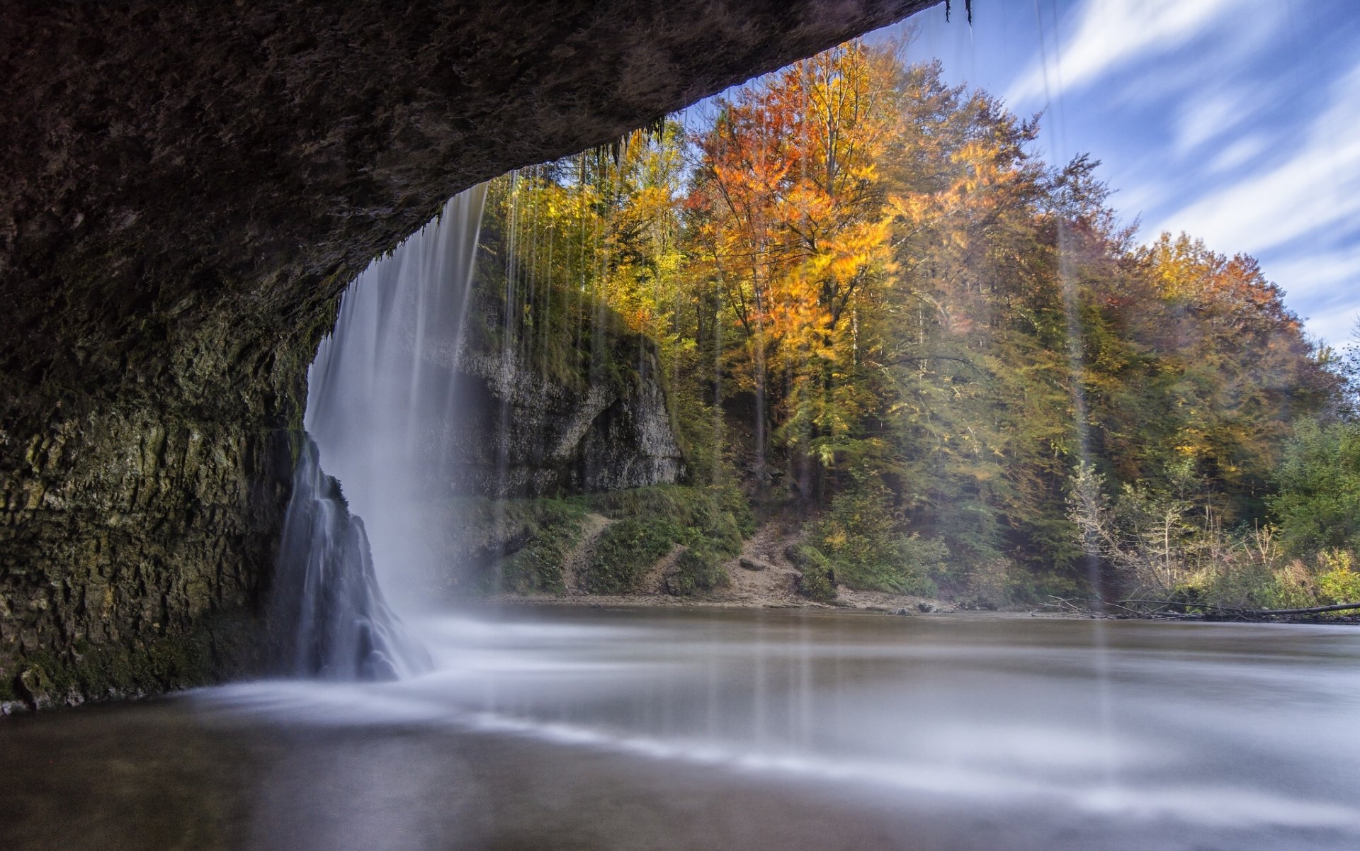 Lustrzana powierzchnia jeziora naruszona przez duże kręgi na niej