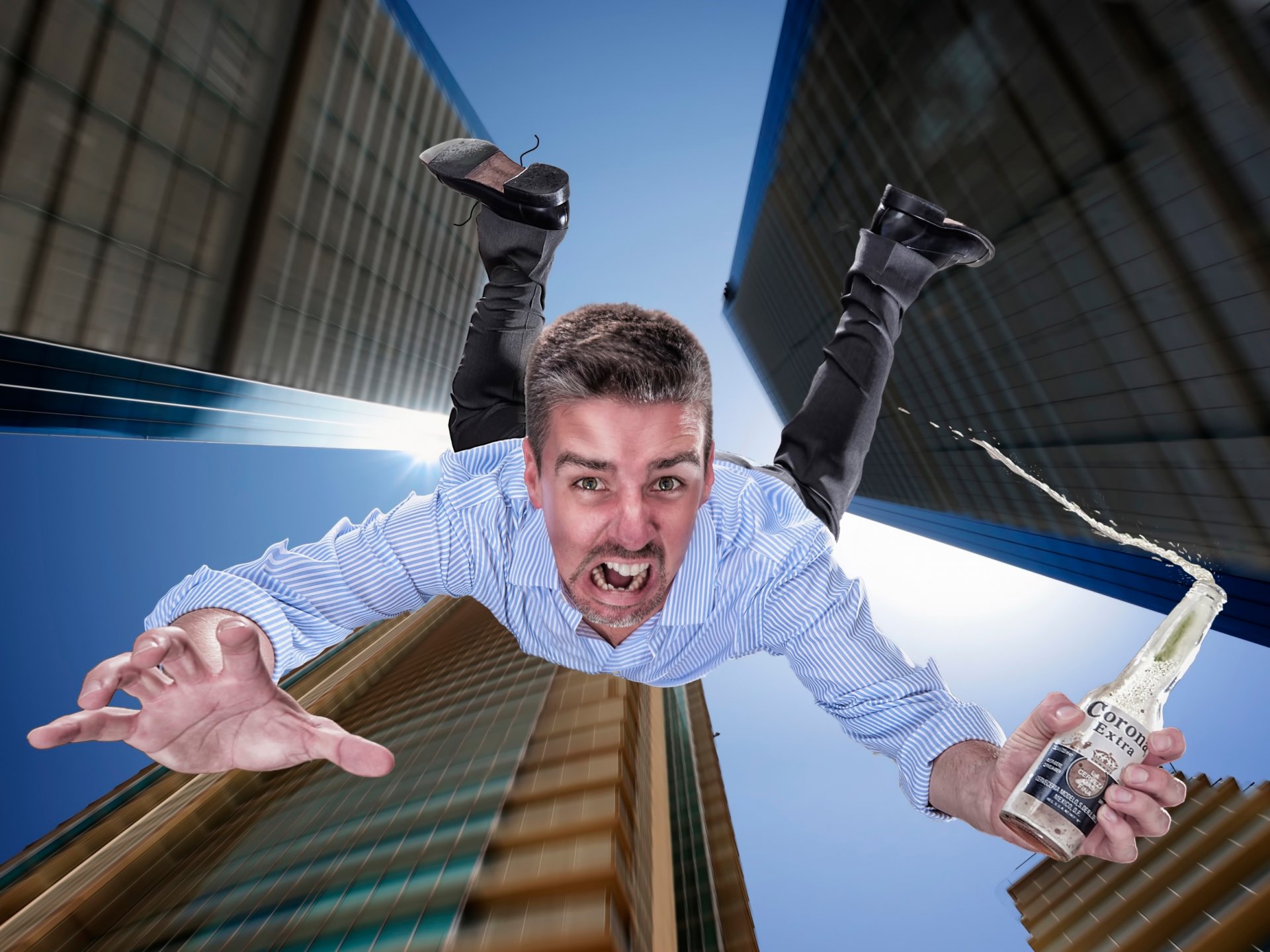 Mężczyzna krzyczy z dziewczyną w ramionach w deszczu