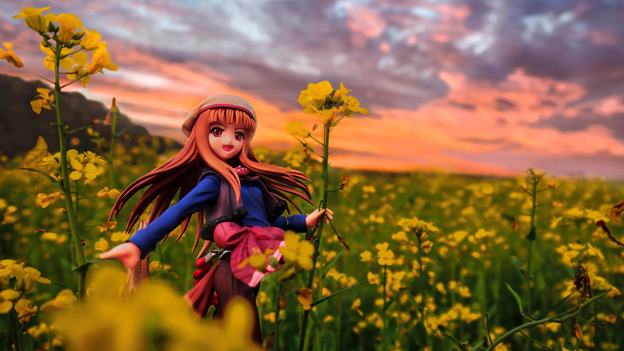 Ryaya dziewczyna w polu z żółtymi kwiatami