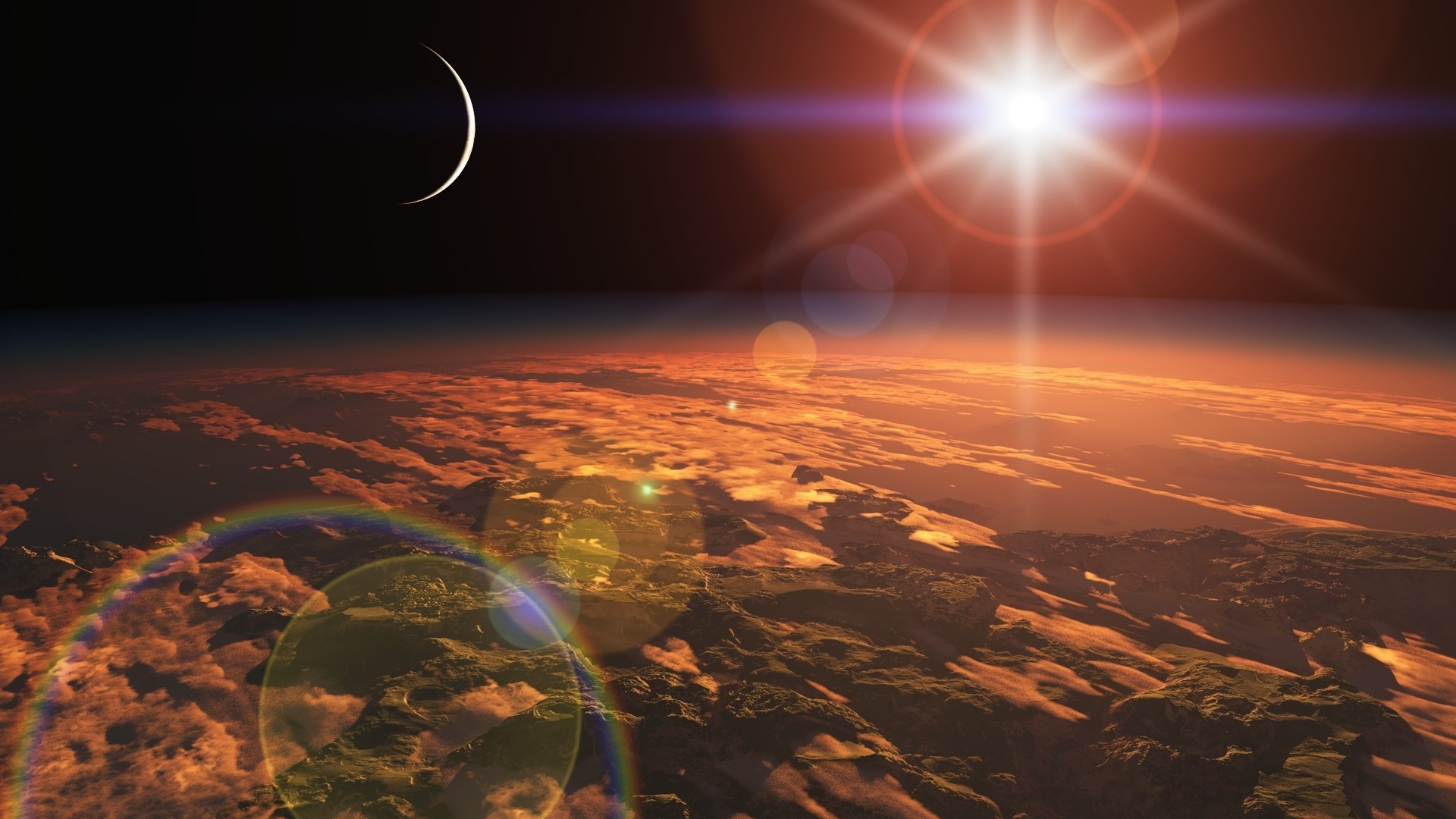 Metioryty lecą w kierunku planety w świetle pięknej gwiazdy