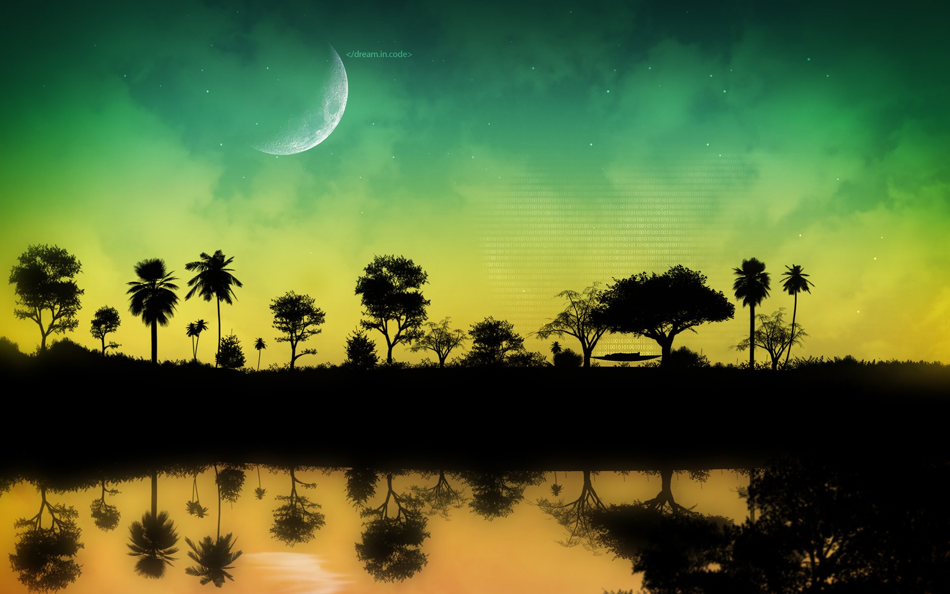Hamak wśród nocnych drzew pod księżycem
