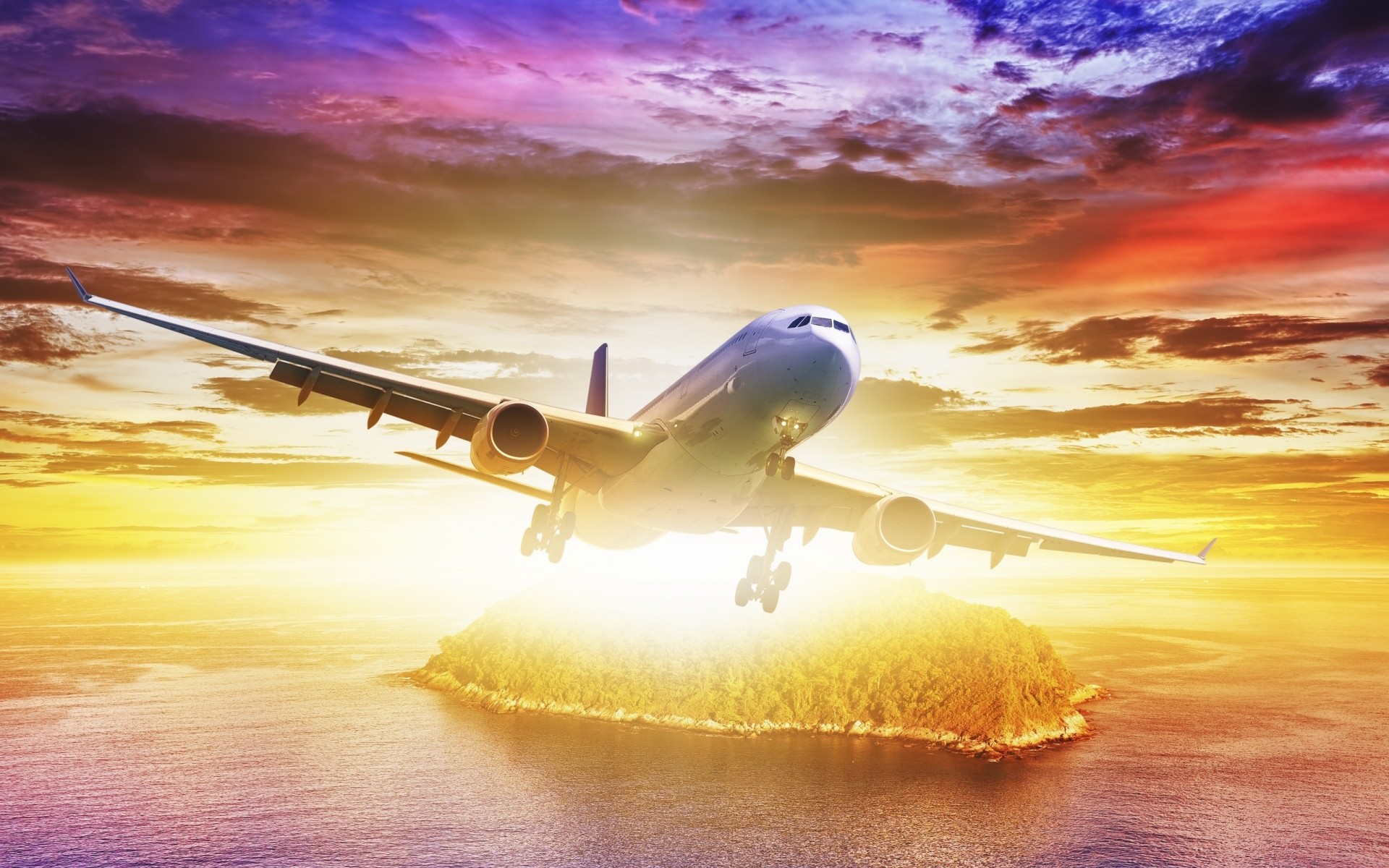Wieżowiec w wieczornym mieście na ogromnej wyspie