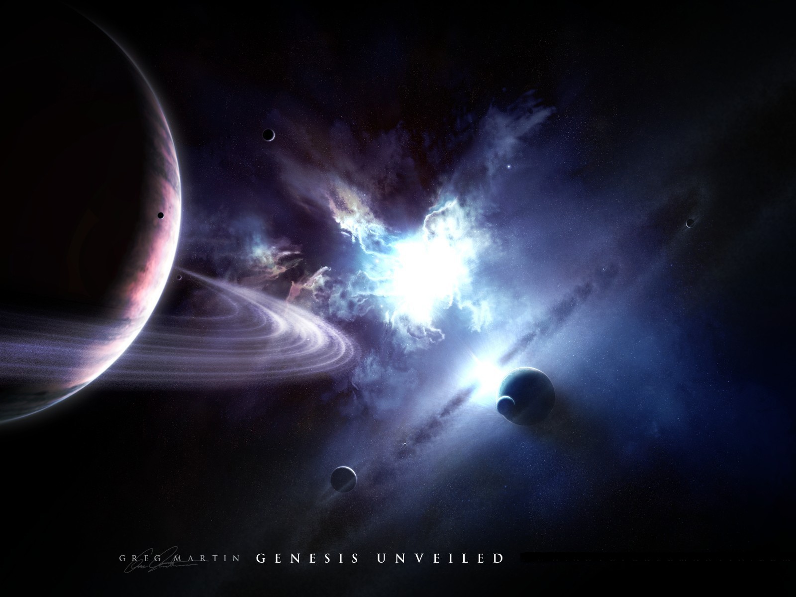 Fantastyczny kosmiczny krajobraz: planeta i jej towarzysz