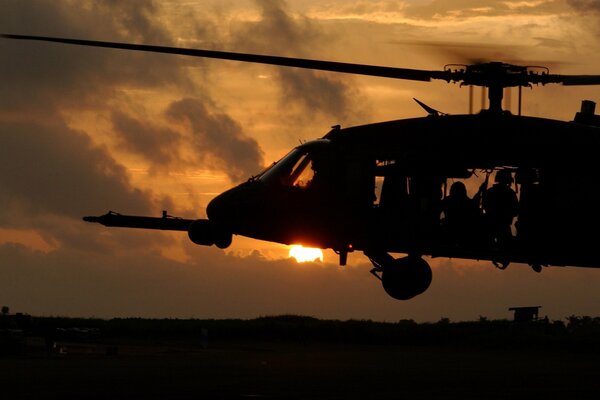 Helikopter apache w świetle słońca o zachodzie słońcaHelikopter apache w świetle słońca o zachodzie słońca