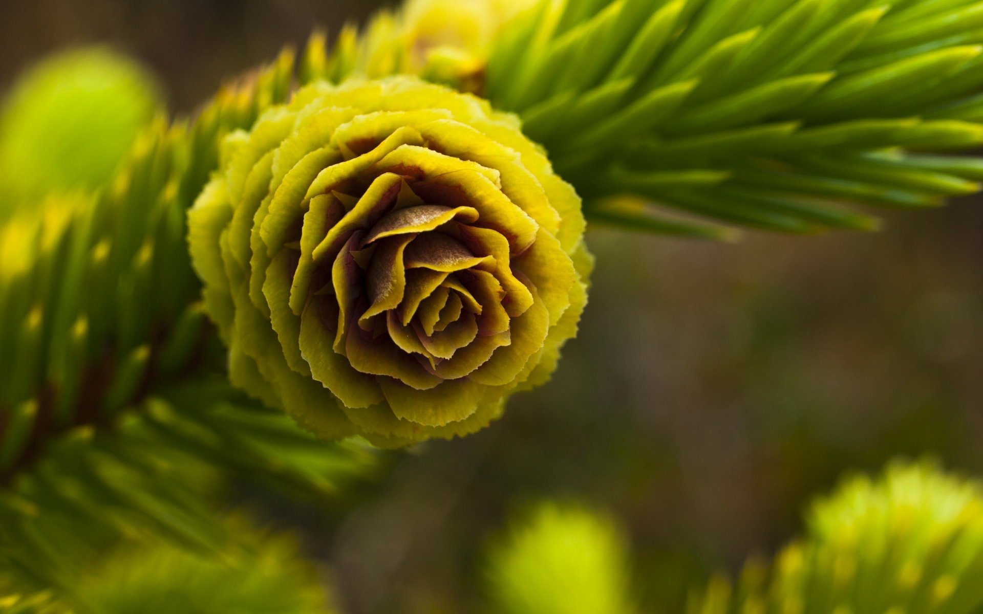 Topniejący śnieg na gałęzi świerkowej, kropelki wody spływają po igłach