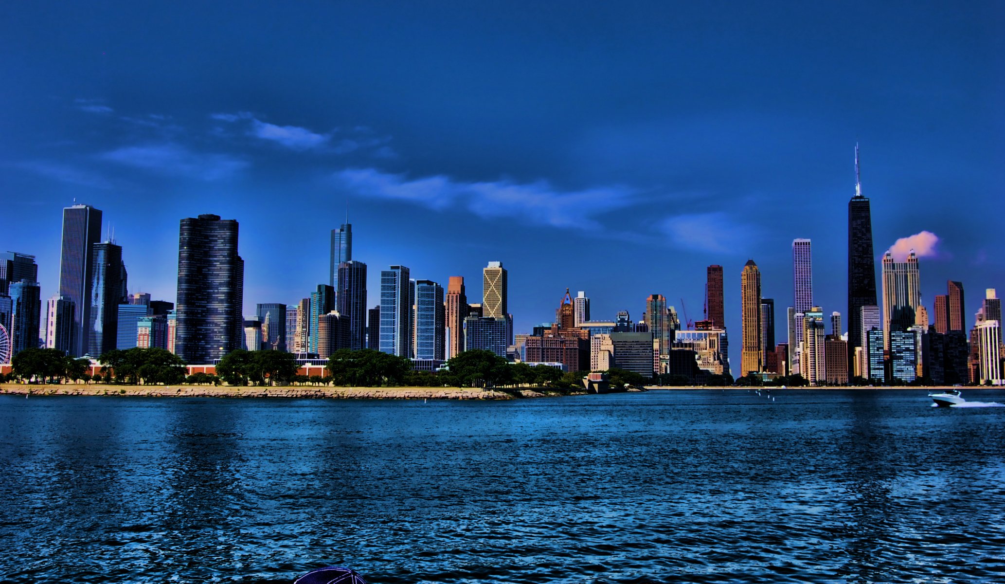Zdjęcie wieczornych drapaczy chmur w Chicago