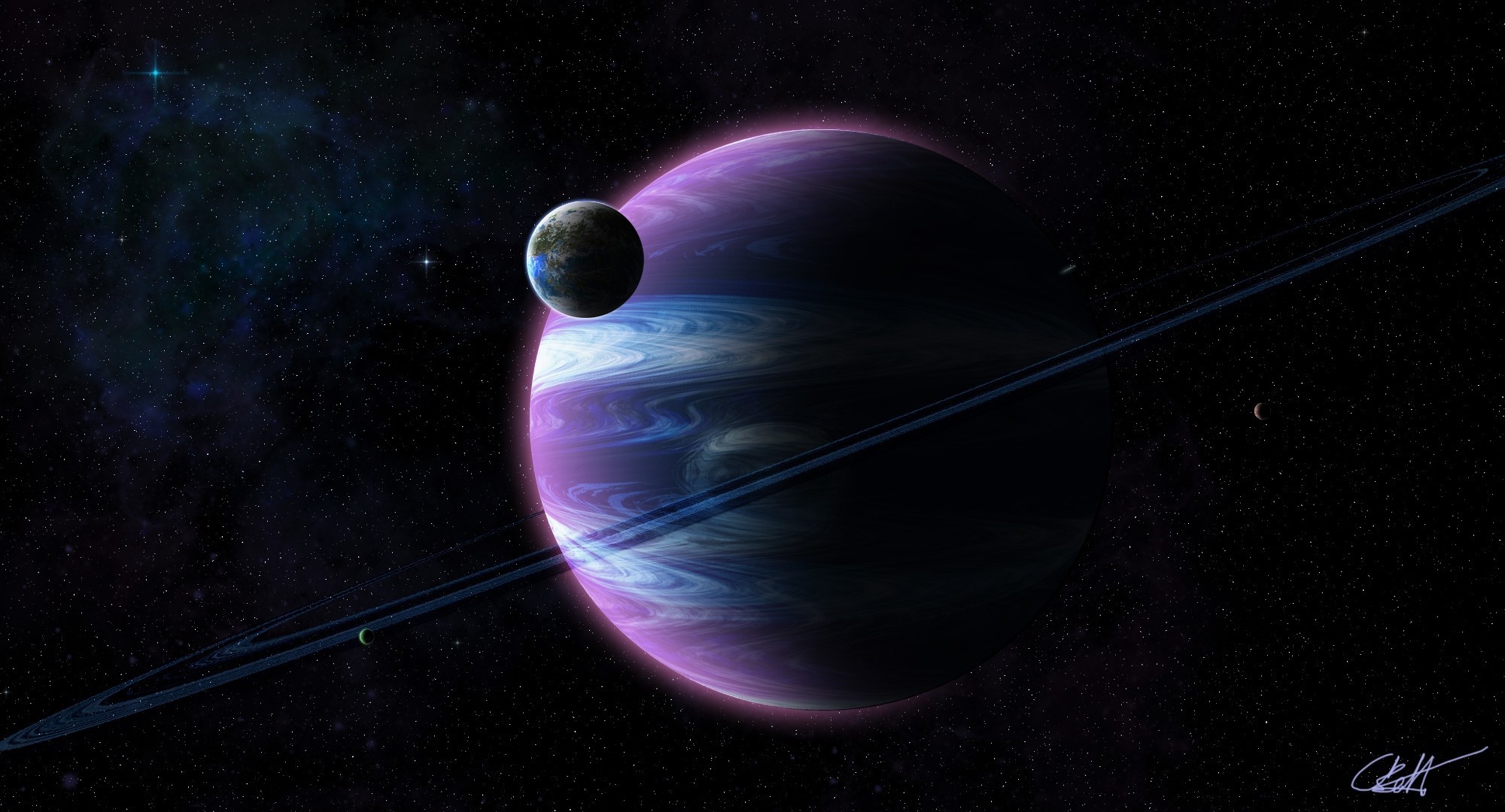 Fantastyczna piękna planeta gdzieś w kosmosie z jednym pierścieniemFantastyczna piękna planeta gdzieś w kosmosie z jednym pierścieniem