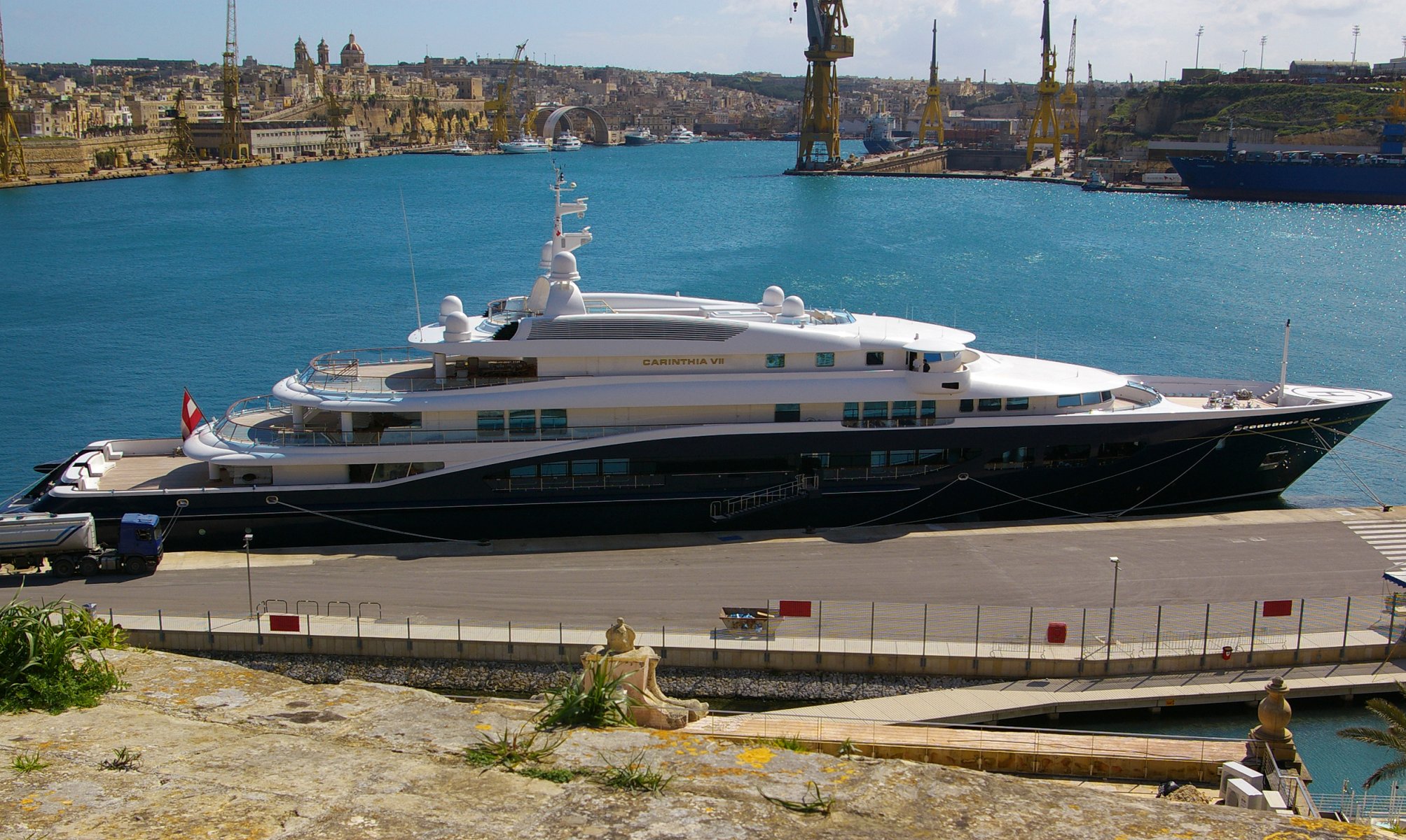 Luksusowy jacht w małej zatoce