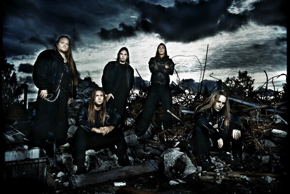 Grupa ludzi na tle burzowego nieba. Grupa Roope Latvala