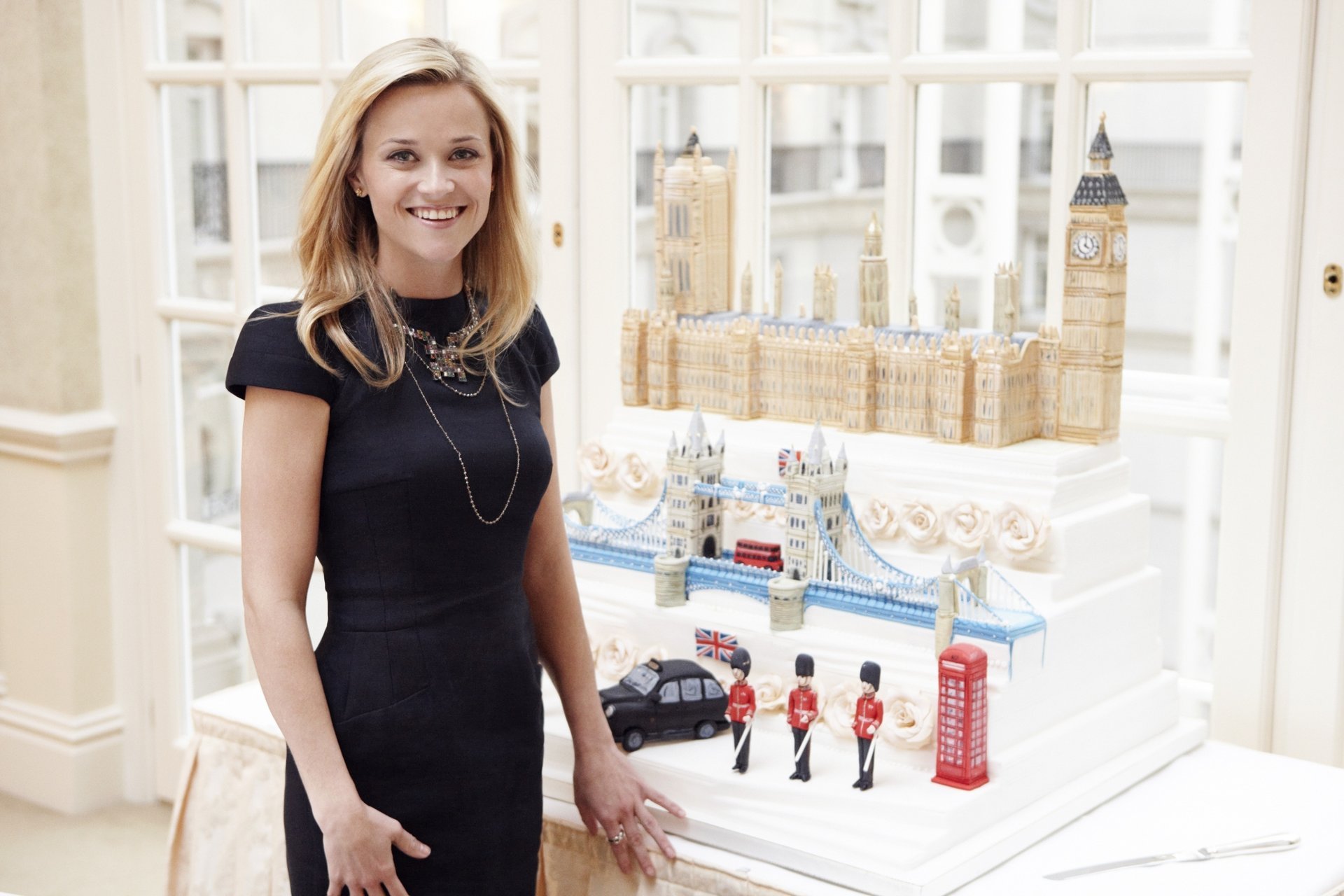 Reese witherspoon w czarnej sukience i stole z makietamiReese Witherspoon w czarnej sukience i stole z makietami