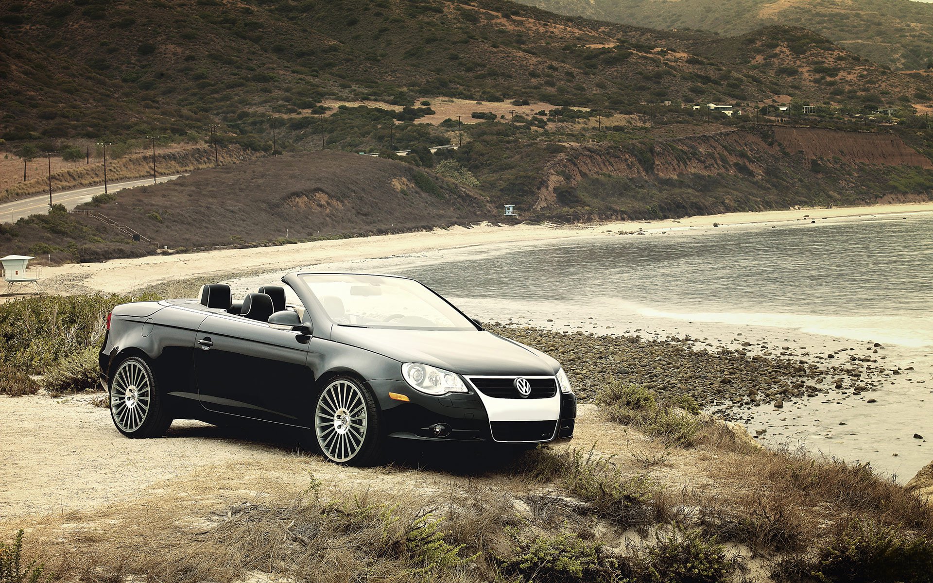 Widok przedniego koła SUV-a stojącego na skałach z łodzią w tle