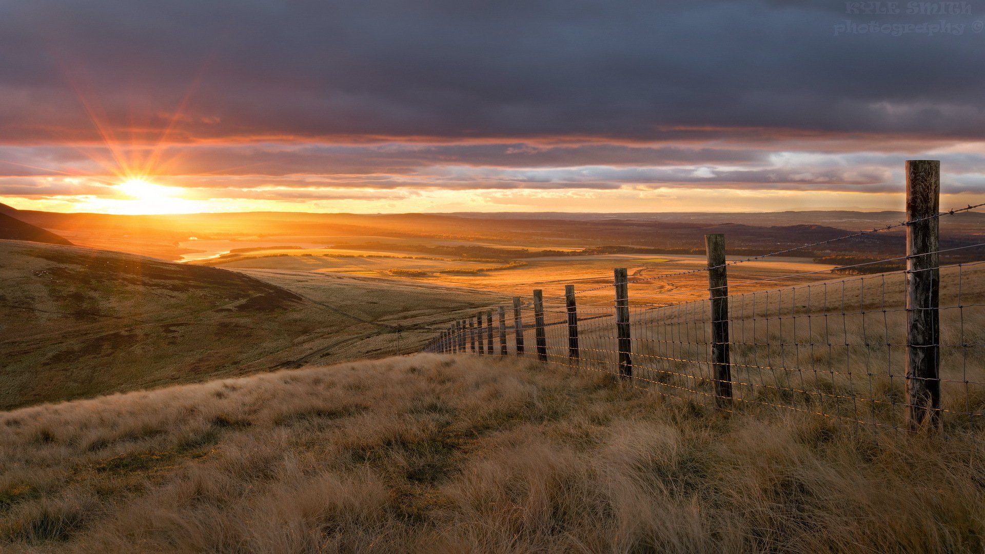 Wschód słońca nad polem z ogrodzeniem