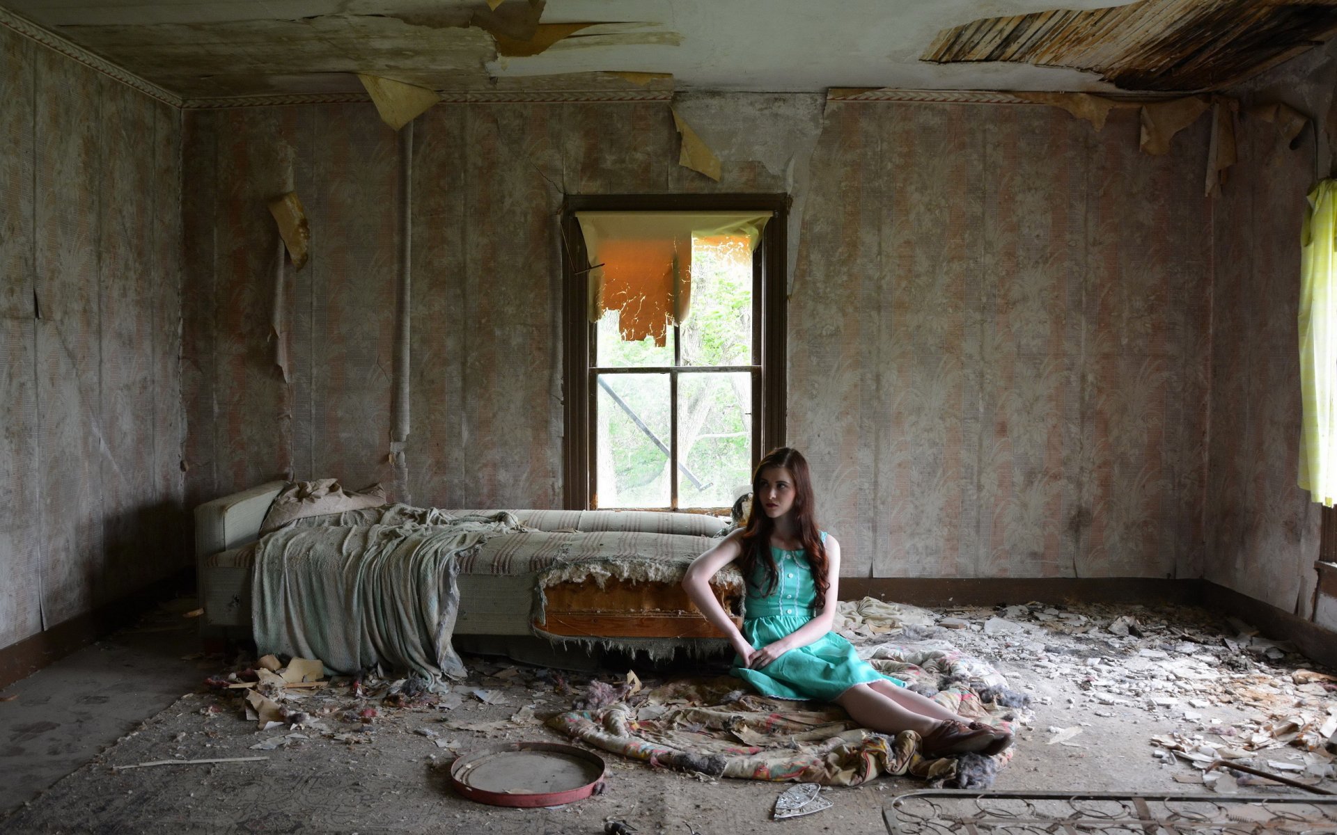 Samotna kobieta w brudnym pokoju