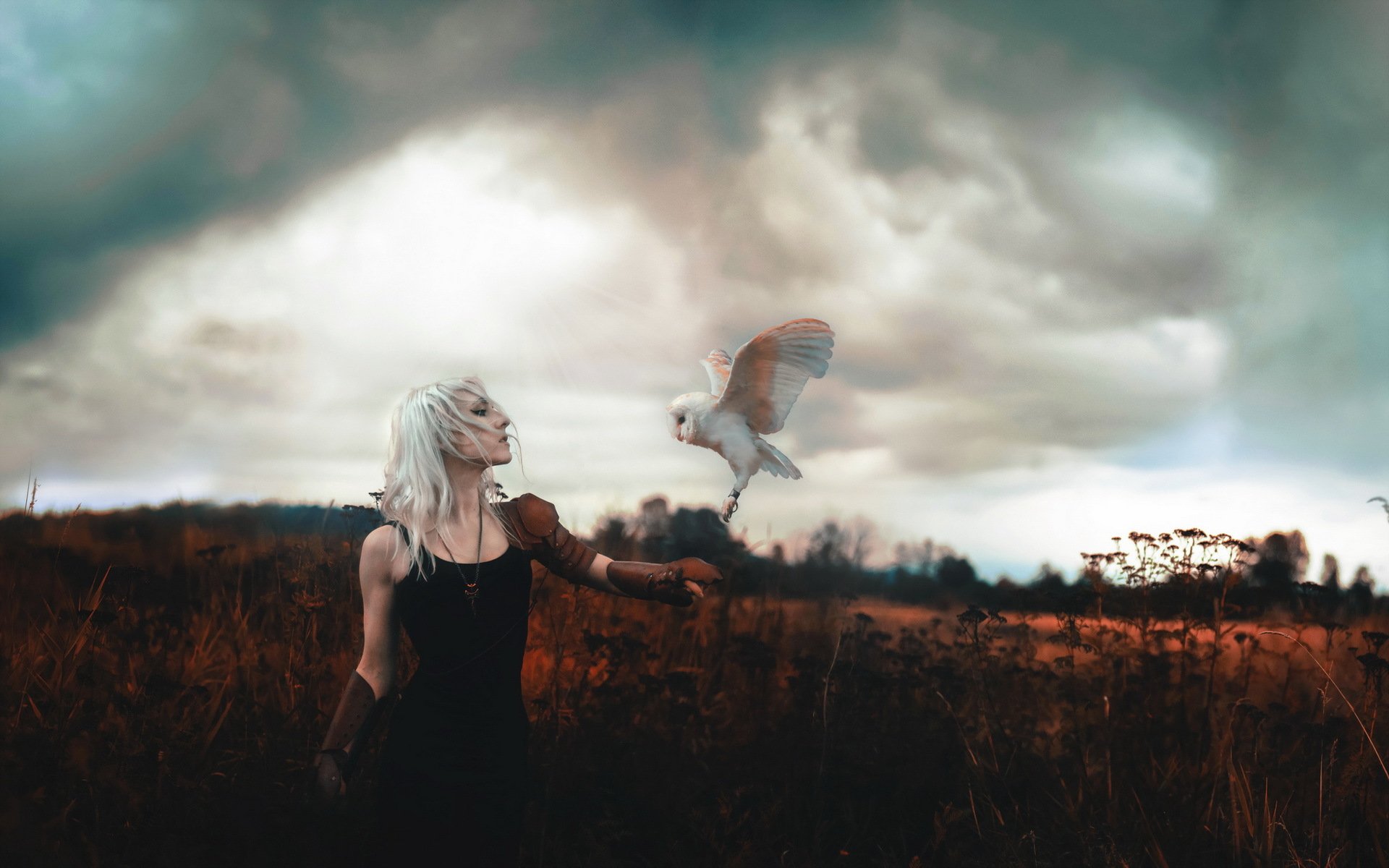 Ciemnoskóra kobieta z głowicą bojową w etnicznym naszyjniku i łukiem bojowym na ramieniu stoi pośrodku dżungli