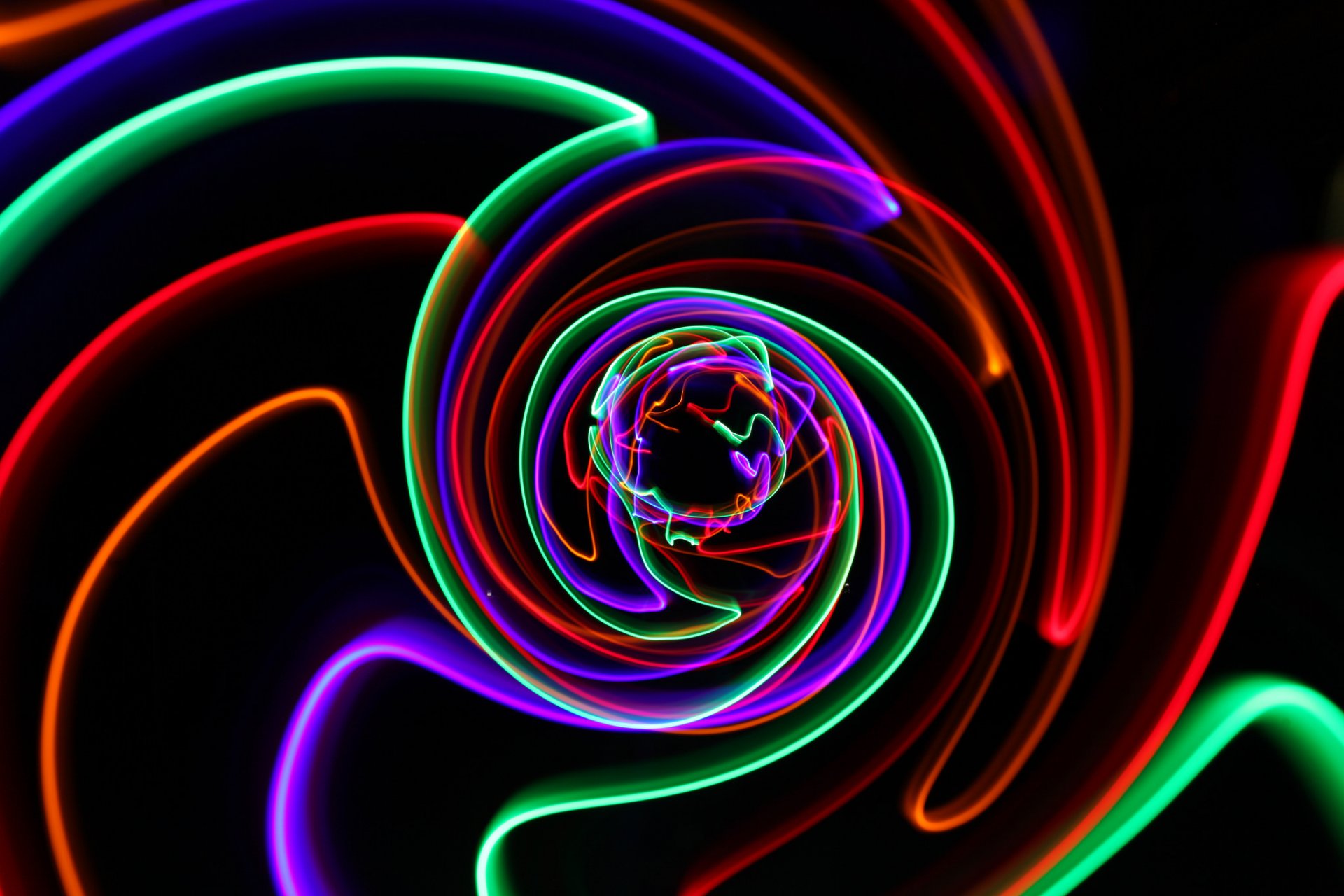 Czerwone pomarańczowe zielone fioletowe promienie na czarnym tle