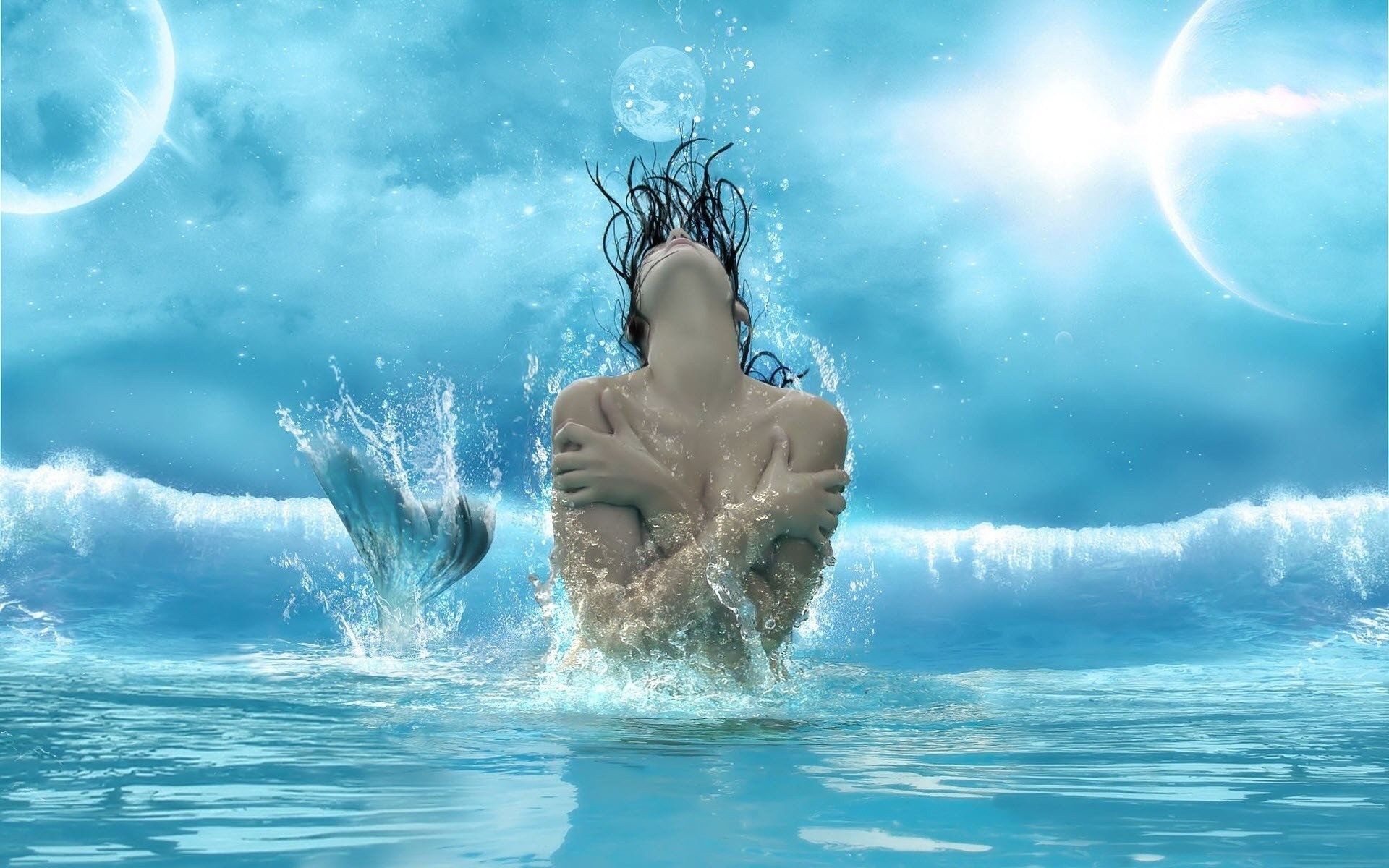Ślimak na mchu, w pobliżu wody i plusku kropli