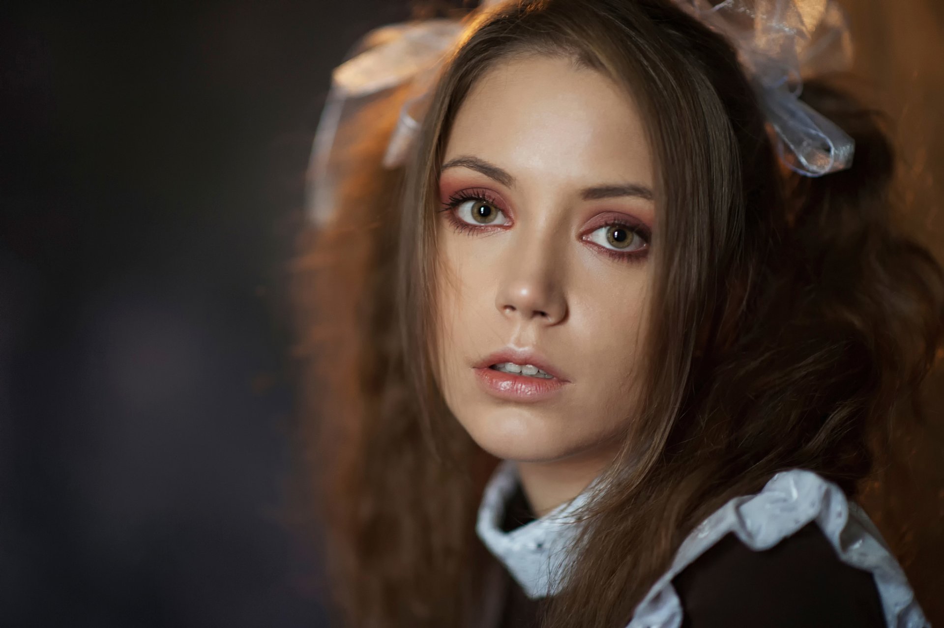 Smutna dziewczyna w białej bluzce na tle zbiornikaSmutna dziewczyna w białej bluzce na tle zbiornika