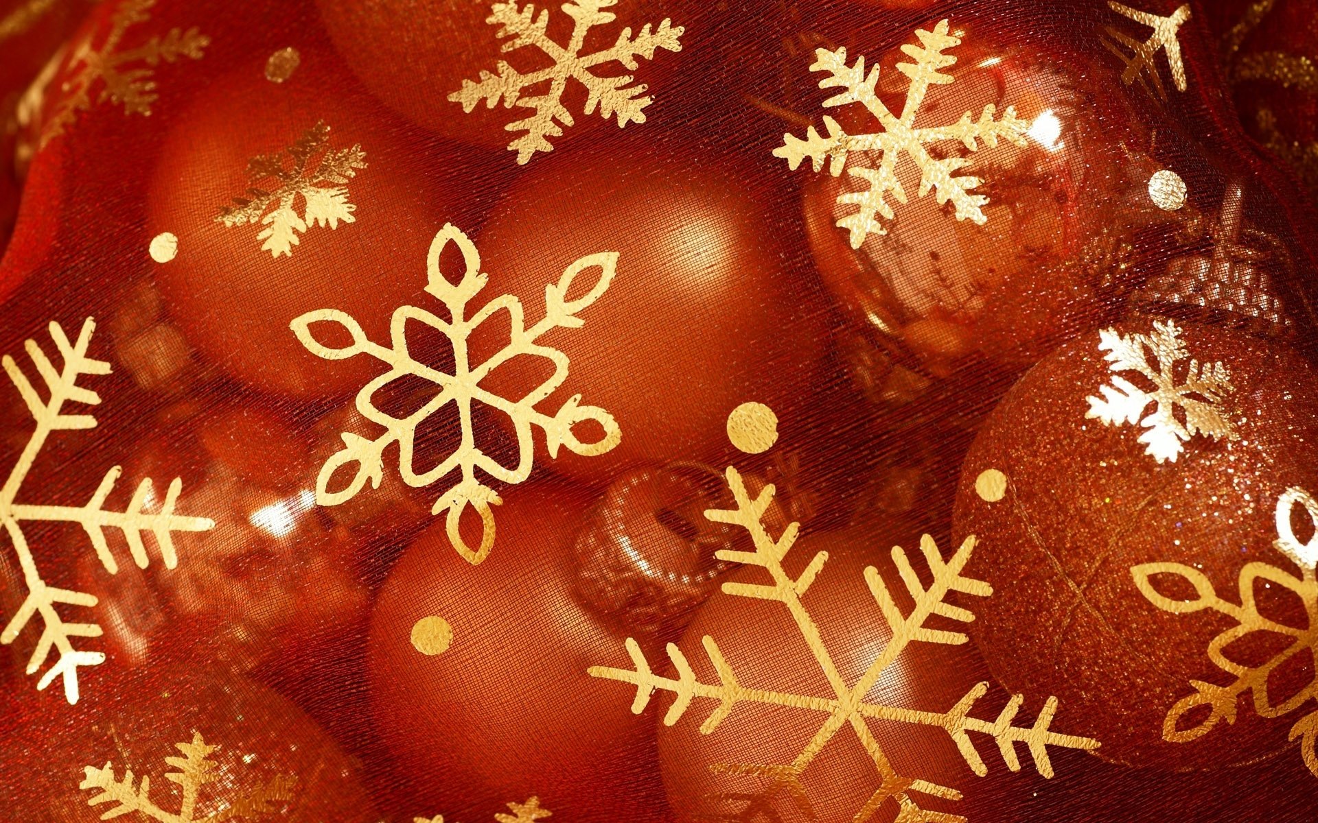 Świąteczna tapeta z płatkami śniegu, gałązką w kulki i czerwoną wstążką