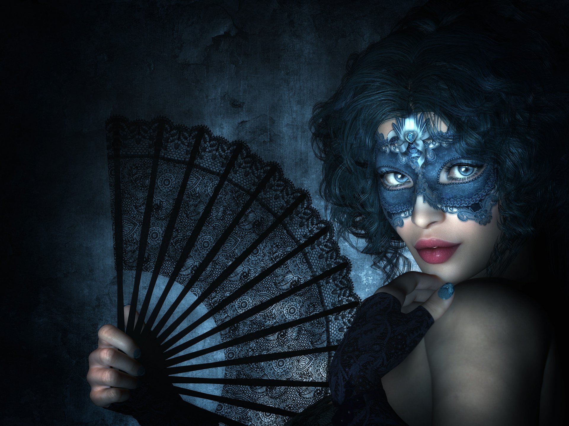 Dziewczyna w ażurowej masce bardzo kusi