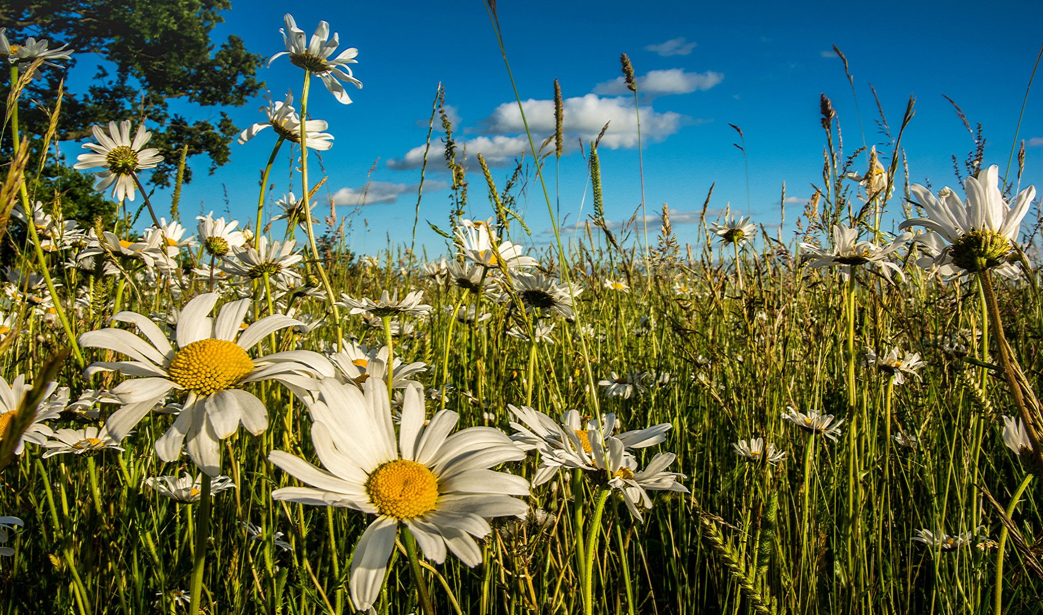 Lato w pełnym rozkwicie-Biedronka czołga się po trawie