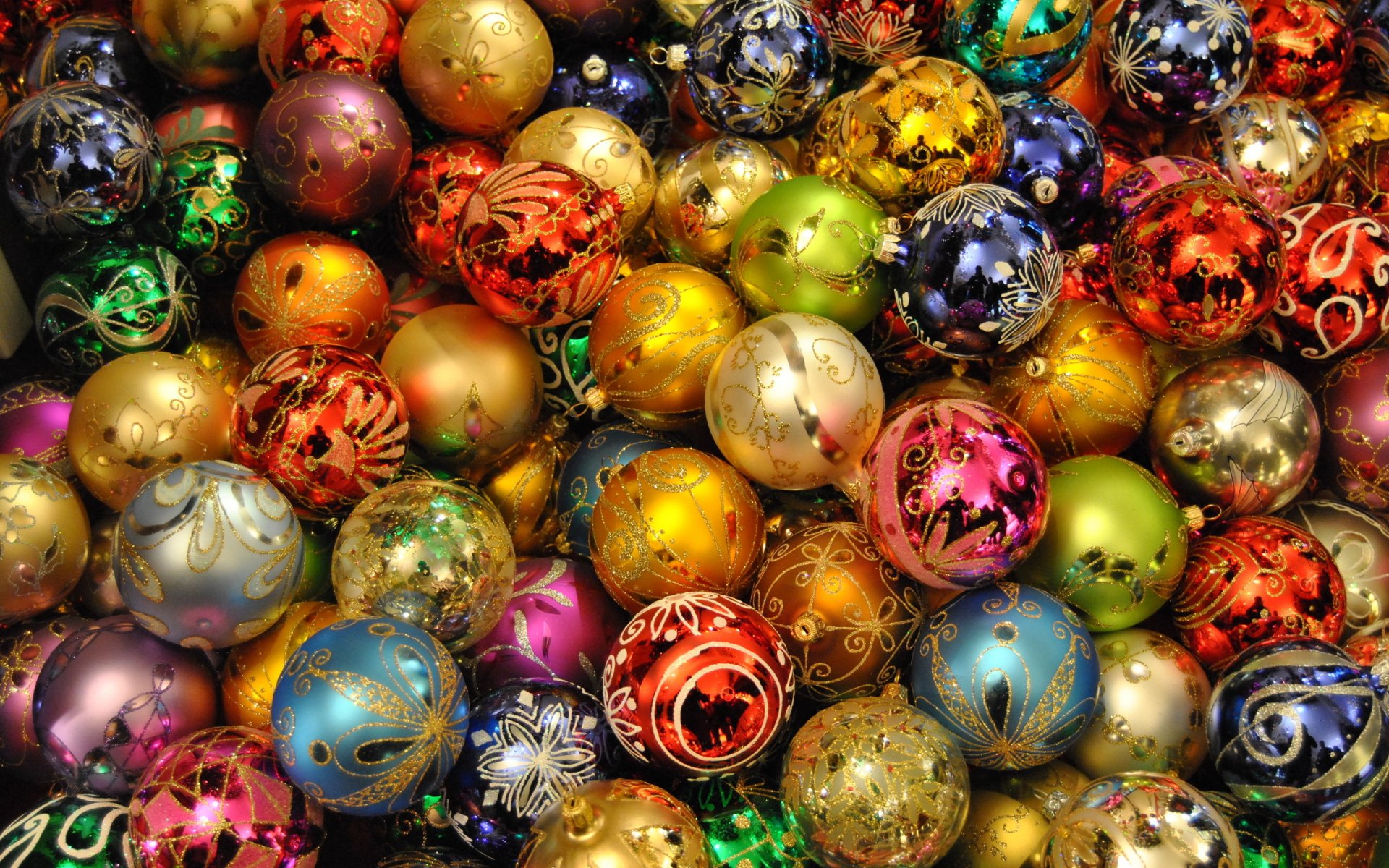 Niebieskie pudełko świąteczne z dekoracjami choinkowymi