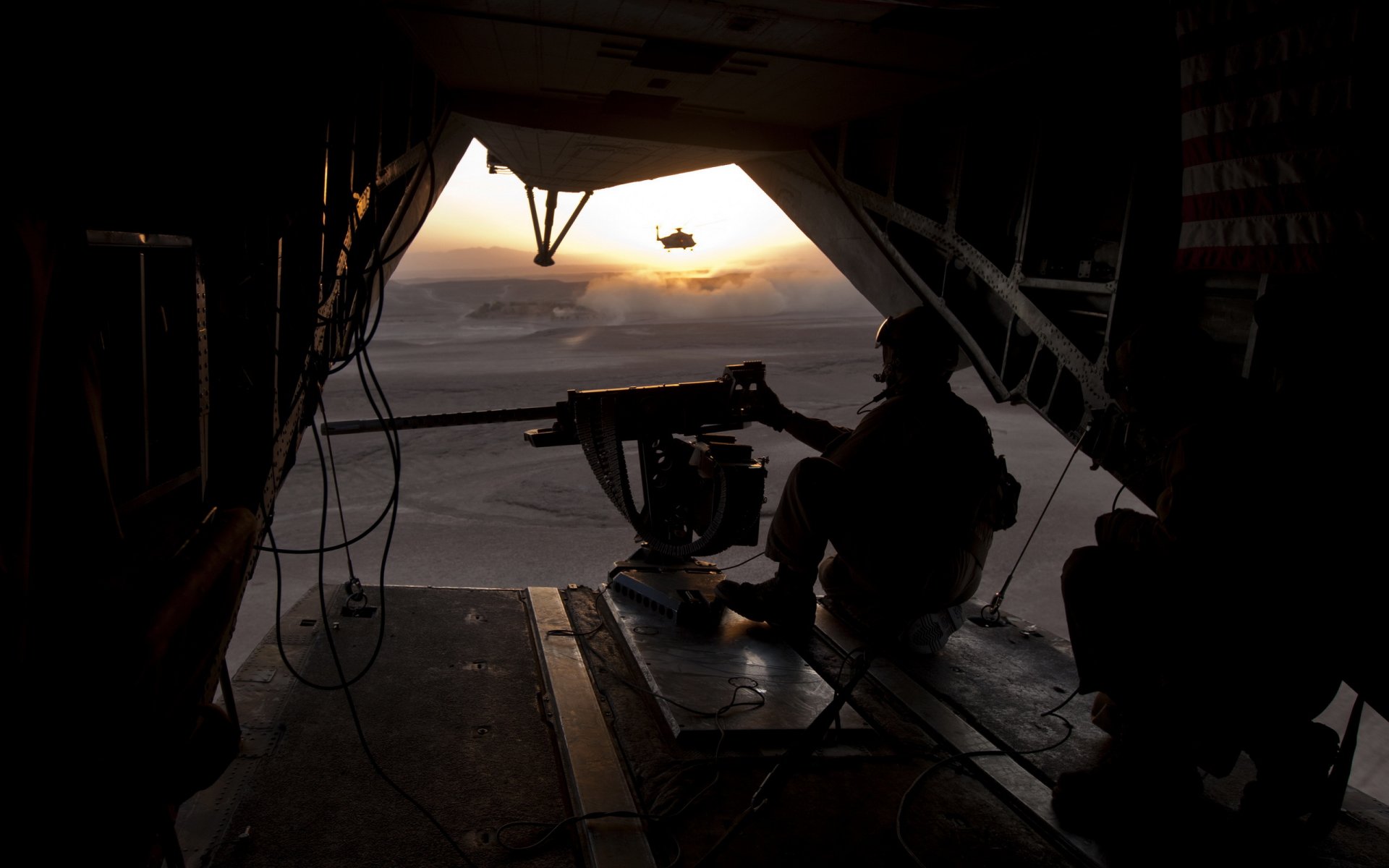 Uzbrojony żołnierz o zachodzie słońca
