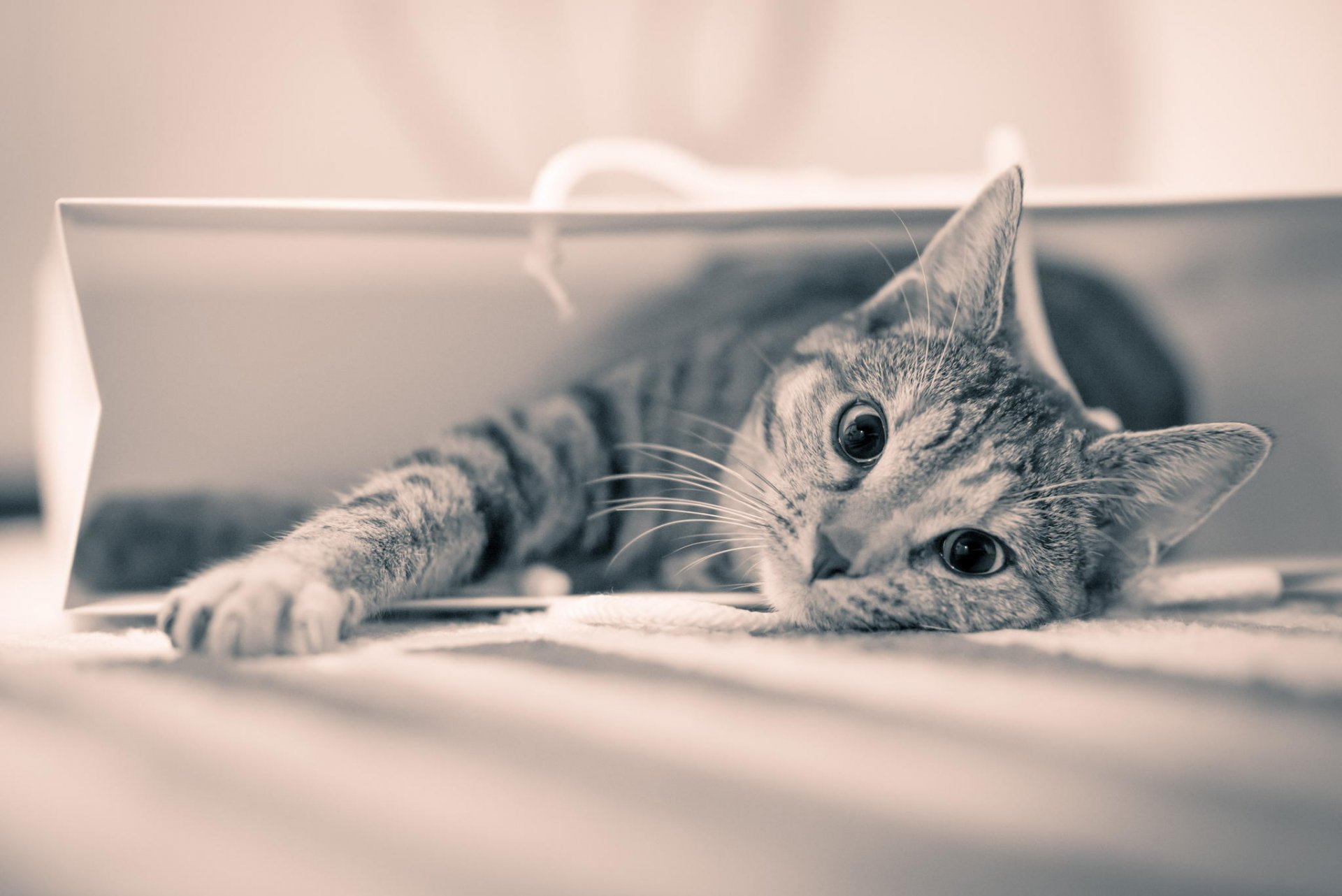 Źdźbła trawy podkreśliły sprytne spojrzenie kota
