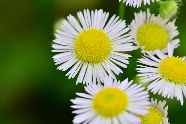 Kwiaty stokrotki na rozmytym zielonym tle