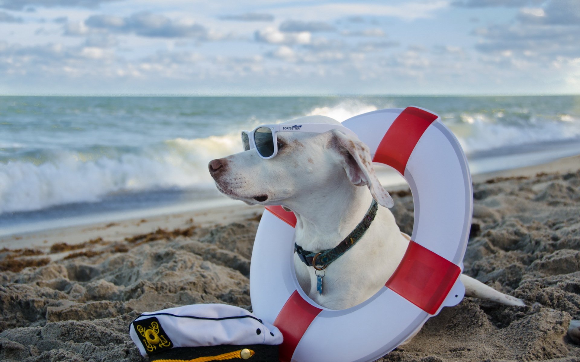 Piękny i inteligentny wygląd. Pies w polu kwiatów