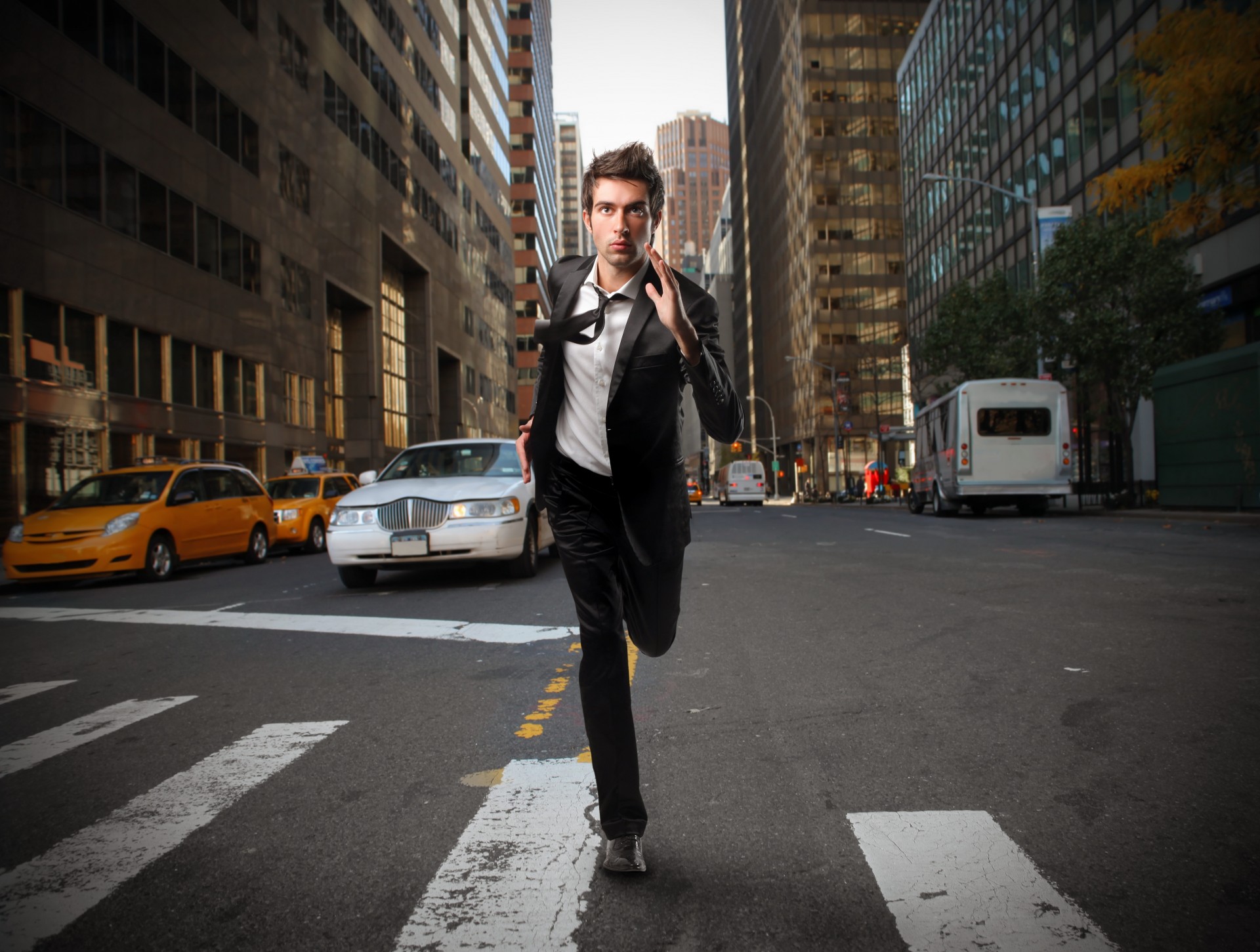 Pościg za czerwonym retro samochodem na ulicy miastaPościg za czerwonym Retro samochodem na ulicy miasta