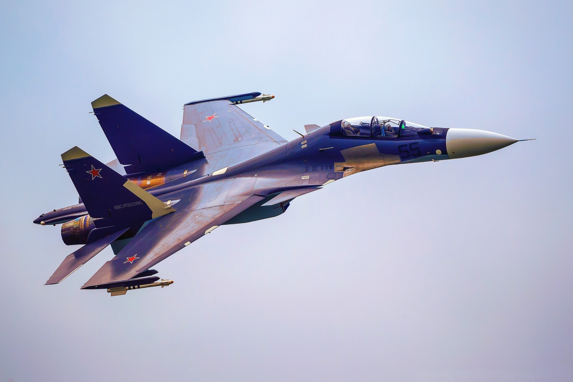 Niebieski samolot z czerwonymi gwiazdami leci na niebieNiebieski samolot z czerwonymi gwiazdami leci na niebie