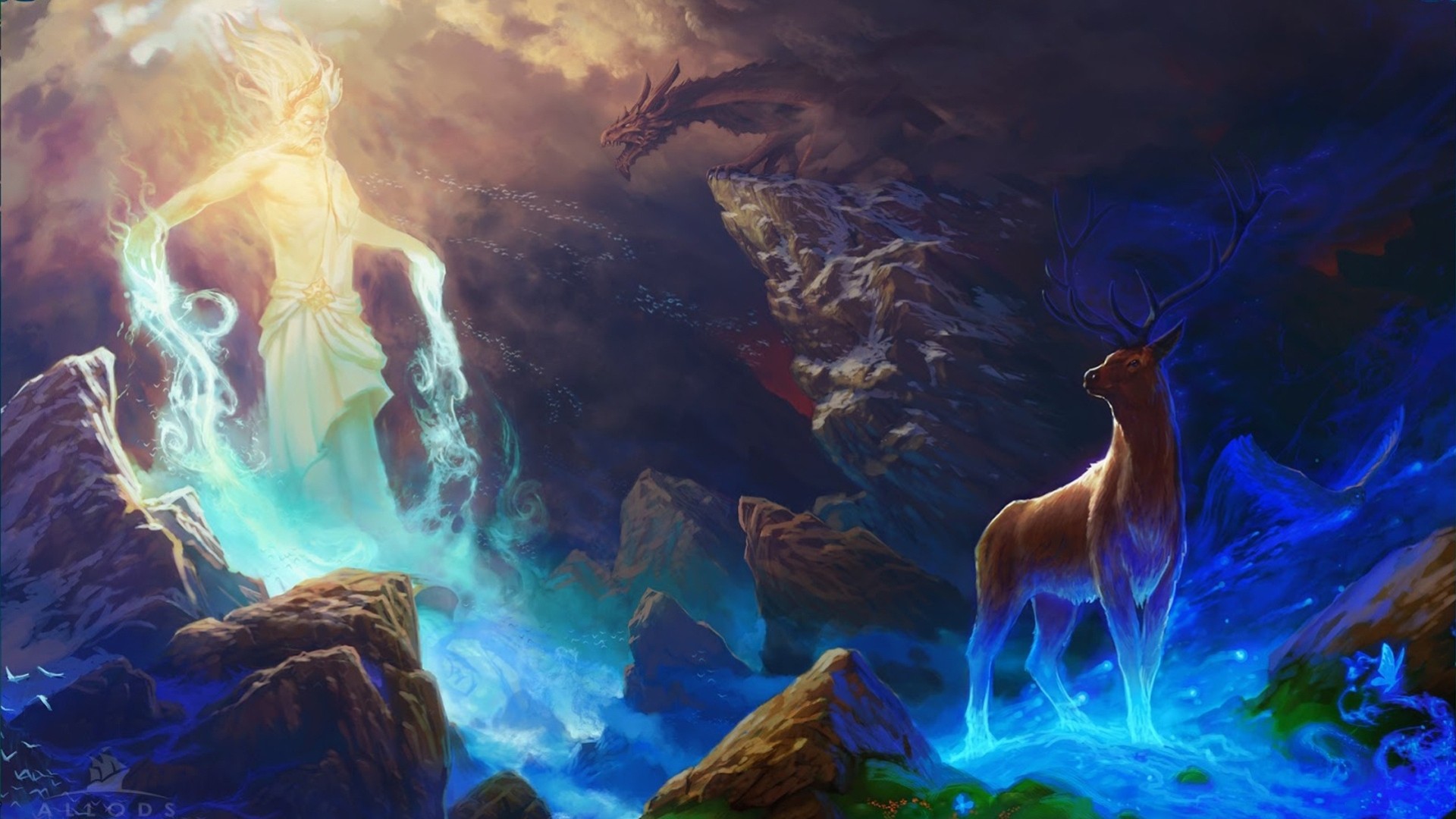 Jeleń na tle jaskini