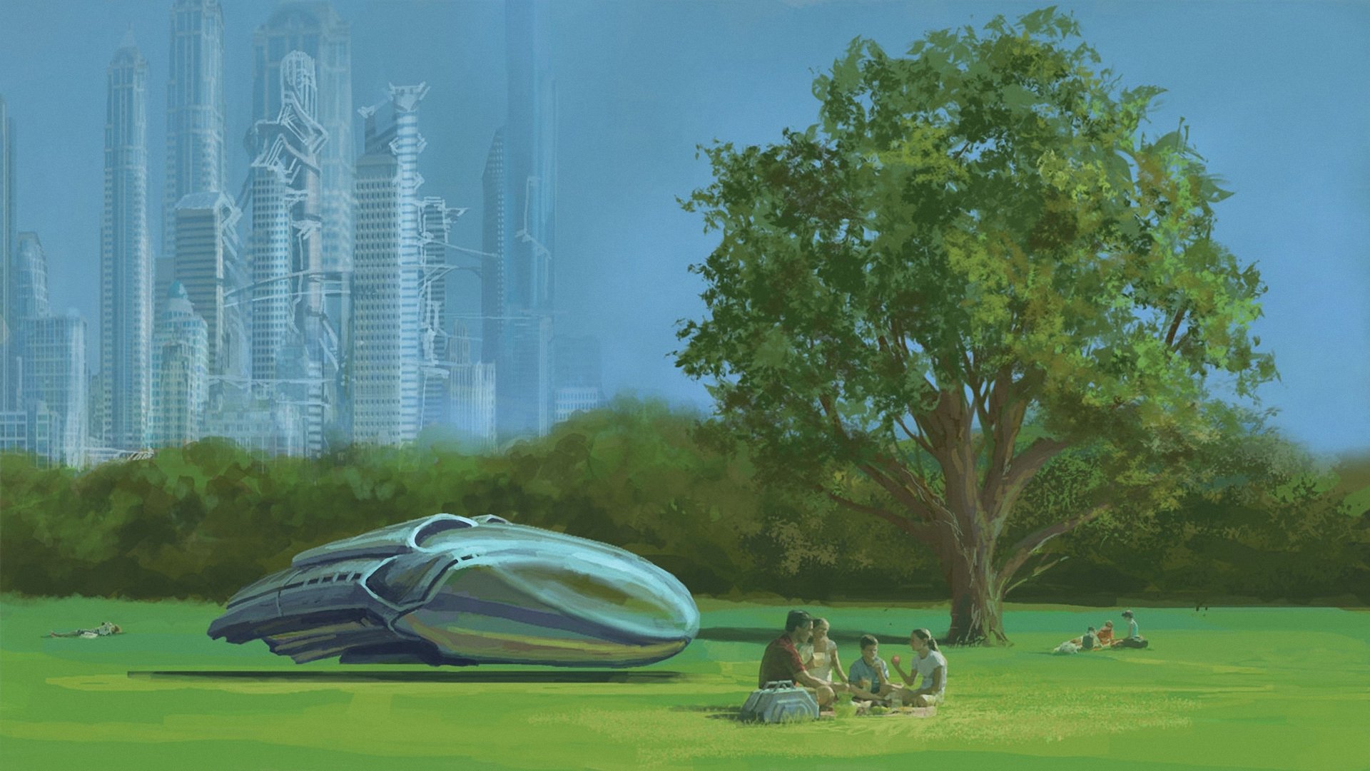 Odległa utopia, w której znajdują się zarówno parki, jak i samoloty odrzutowe-maszyny