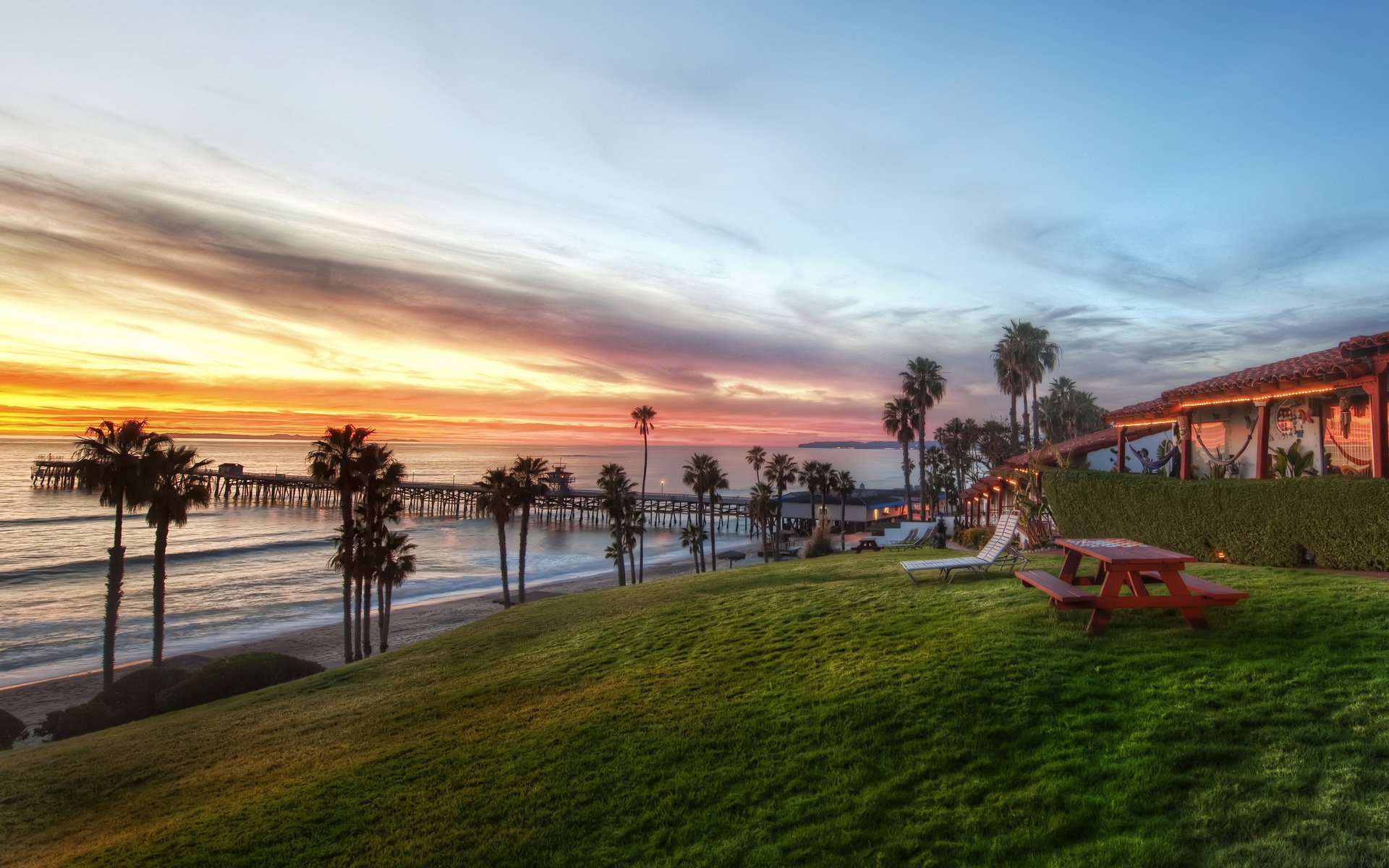 Dom nad morzem na tle jasnego wieczornego gorizna