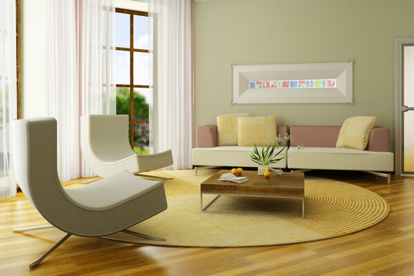 Salon z białymi meblami i dekoracjami