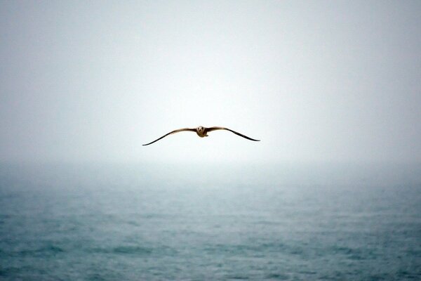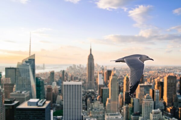 Mewa leci nad centralnymi wieżowcami w Nowym Jorku