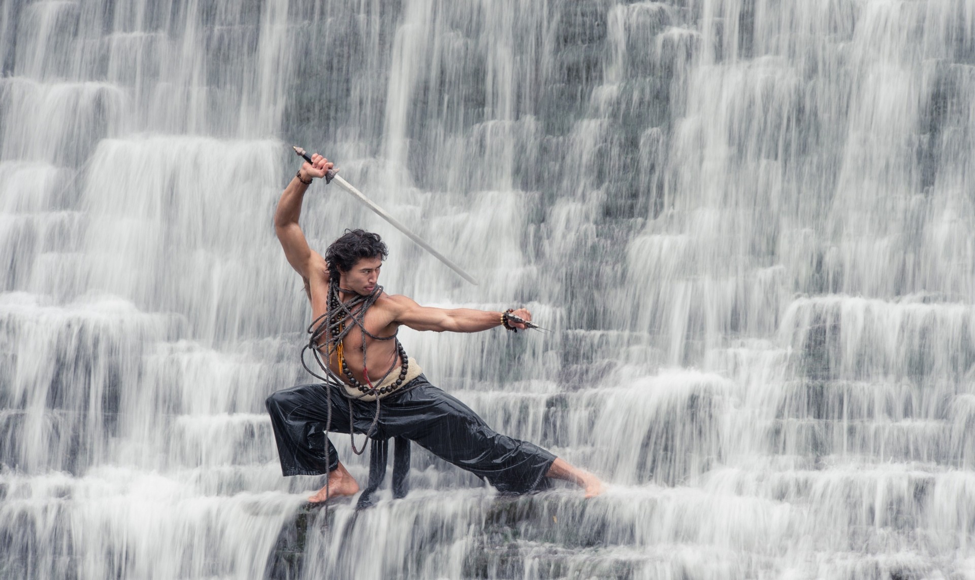 Dziewczyna z mieczem z czerwonymi długimi włosami