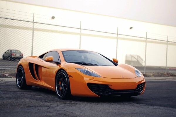 Samochód masklaren w kolorze pomarańczowym z otwartymi przednimi drzwiamiSamochód Masklaren w kolorze pomarańczowym z otwartymi przednimi drzwiami