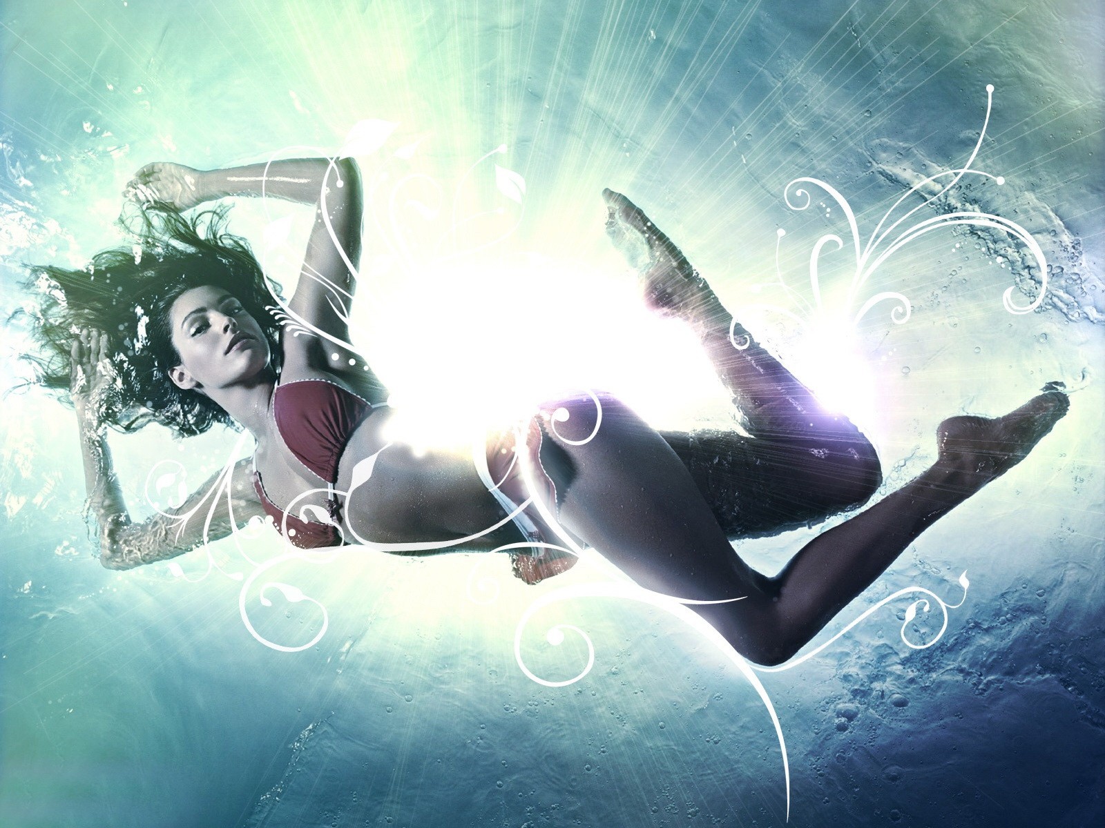 Dziewczyna w kostiumie kąpielowym pływa w morzu
