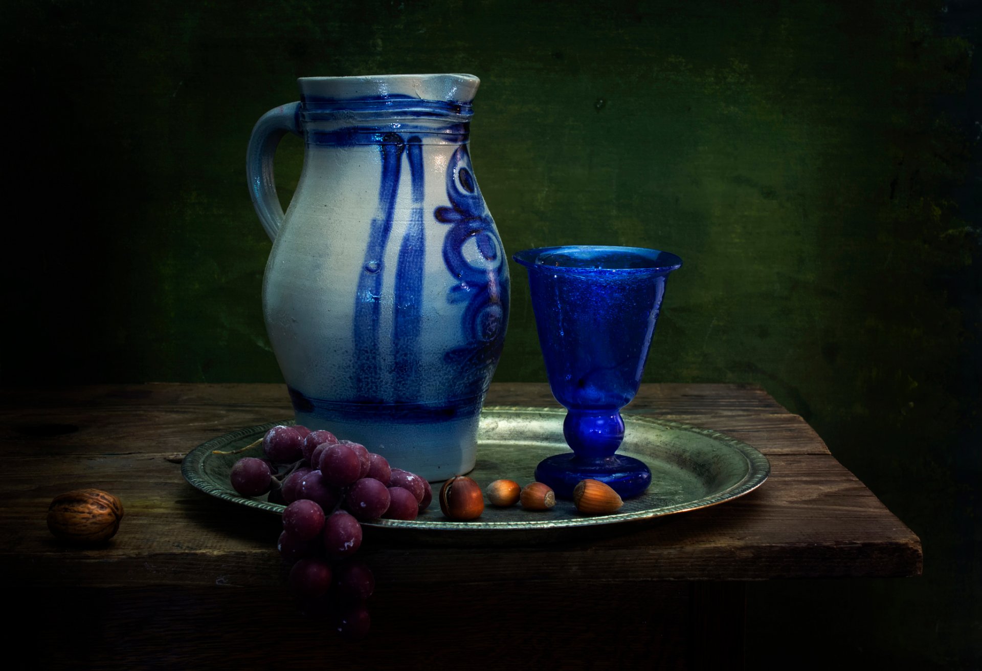 Kompozycja do martwej natury. winogrona, orzechy i szklankaKompozycja do martwej natury. Winogrona, orzechy i szklanka
