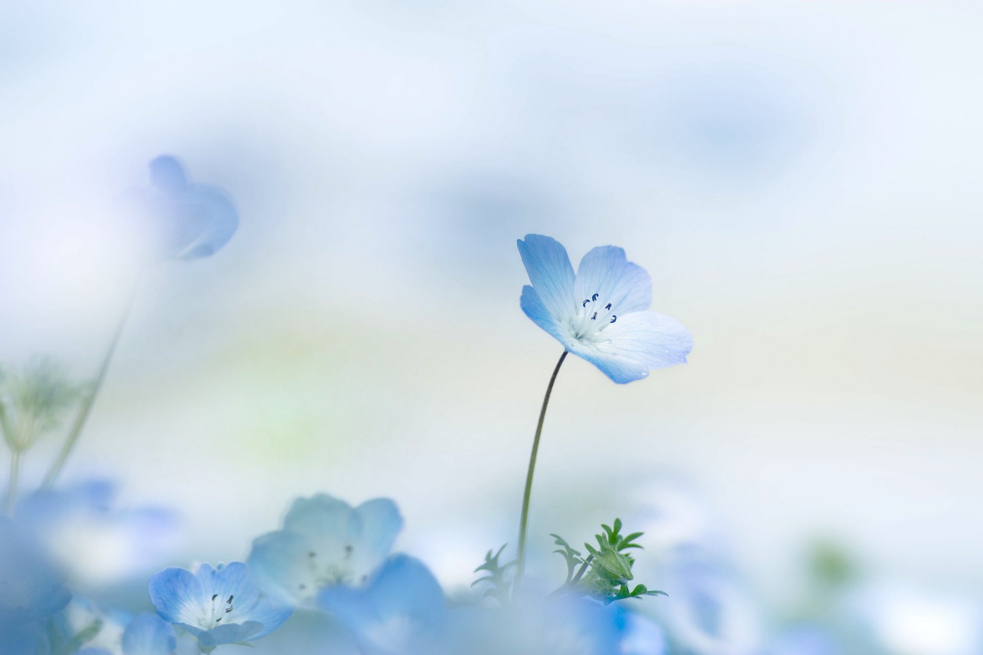 Piękne niebieskie kwiaty na jasnym matowym tle. Rano