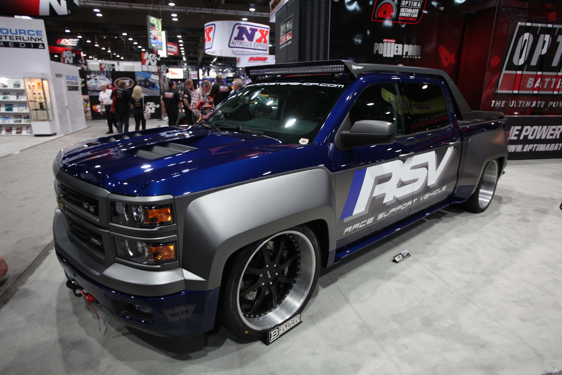 Nietypowe oświetlenie-niebieskie światło i biały samochód