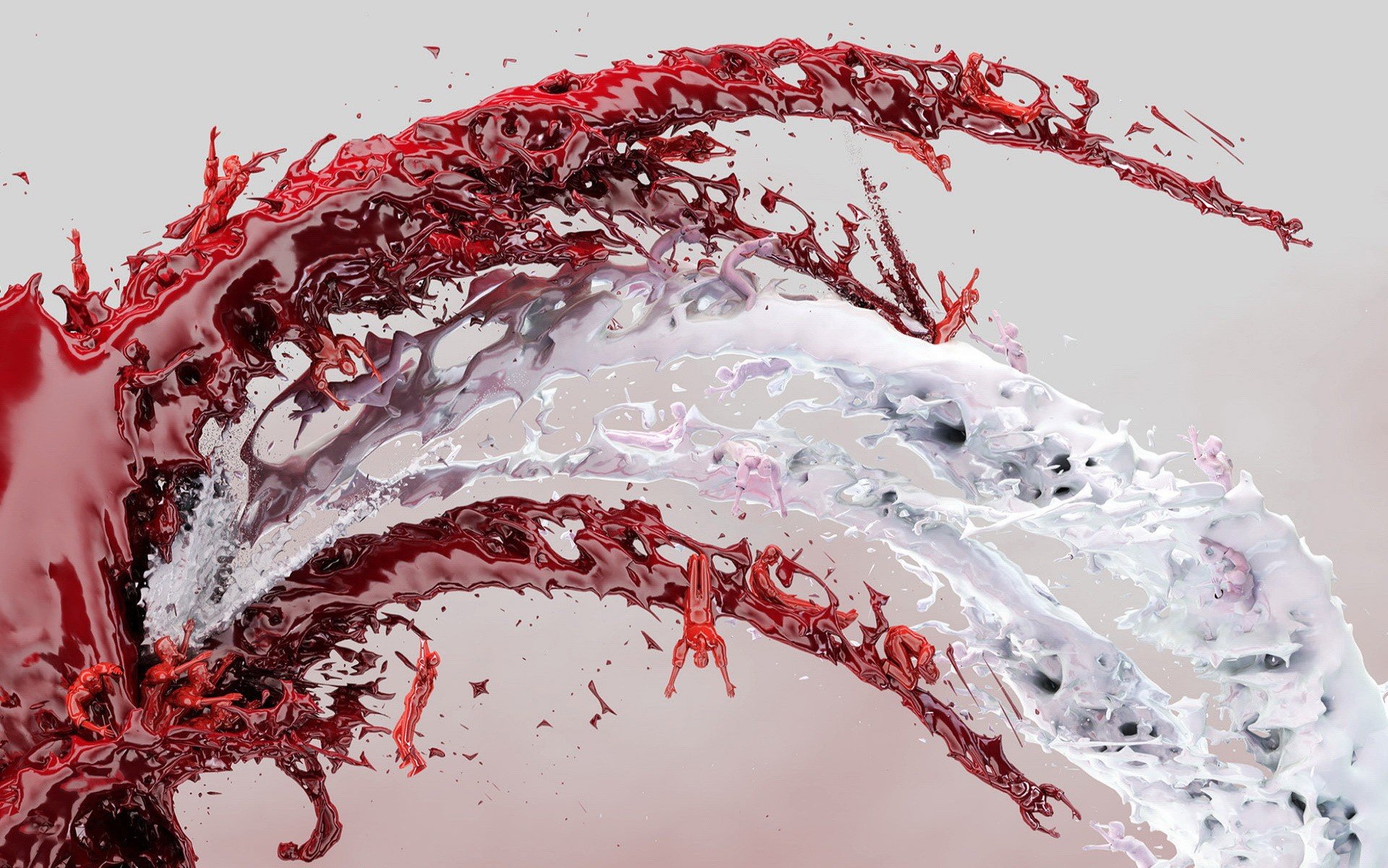 Rozpryski czerwonej i białej farby