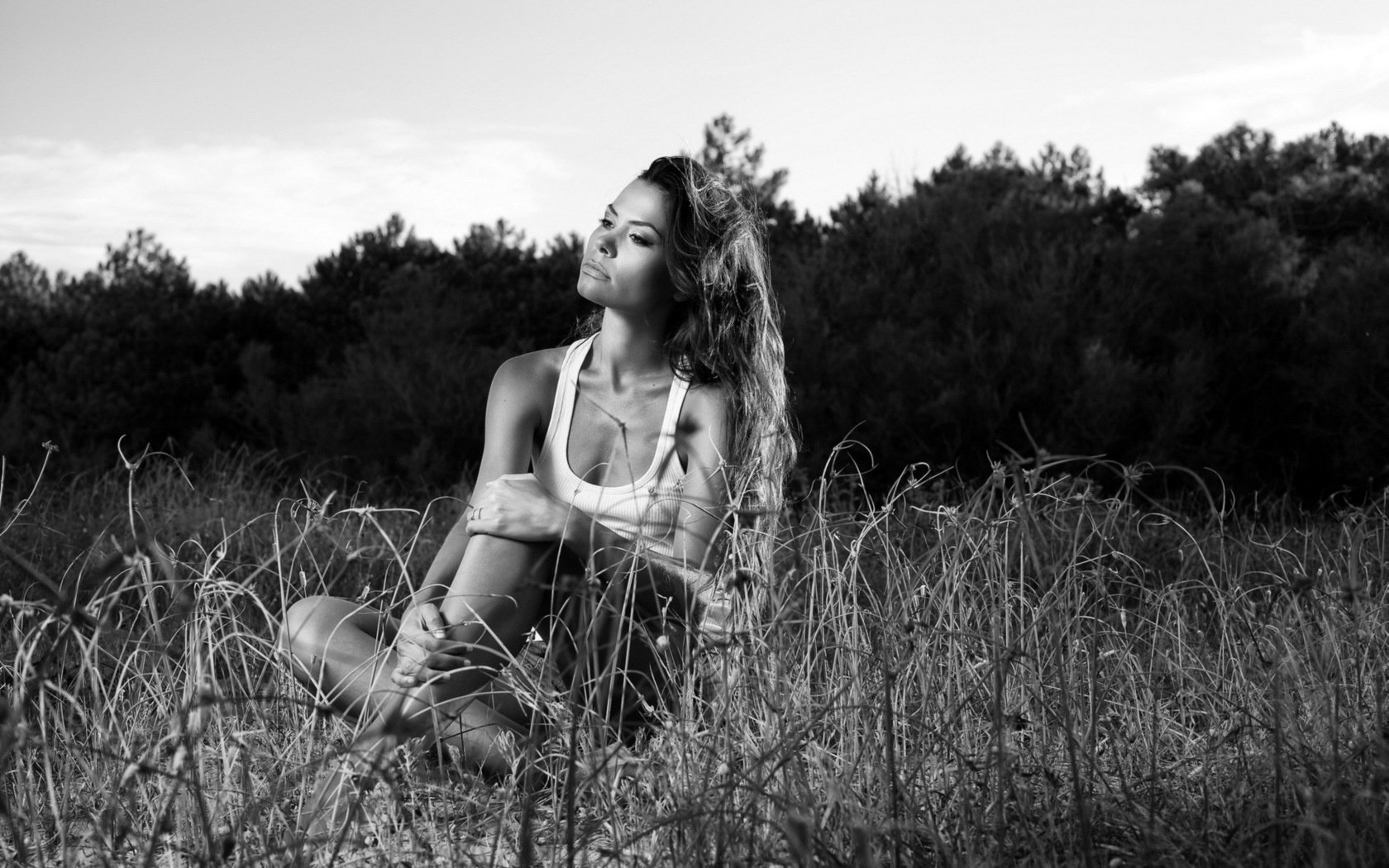 Dziewczyna na rolkach w bikini odpoczywa na ławce
