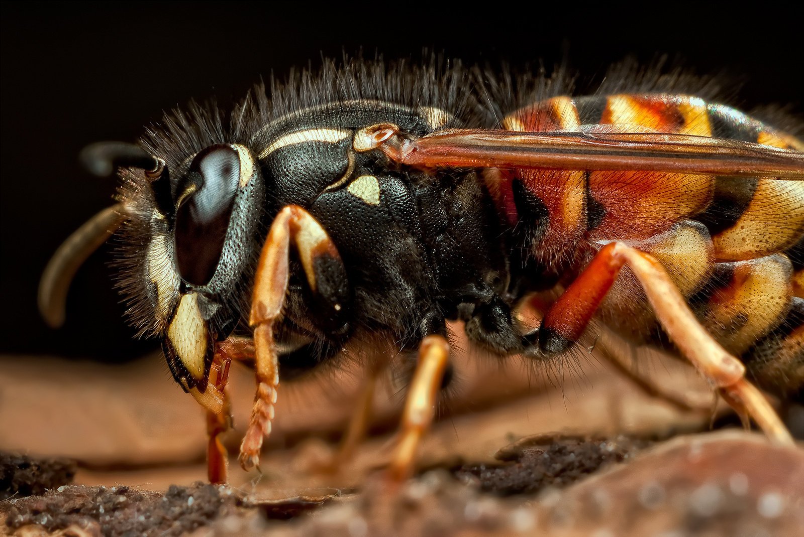 Makro zdjęcie owadów: mrówka i motyl na kwiatku na zielonym tle