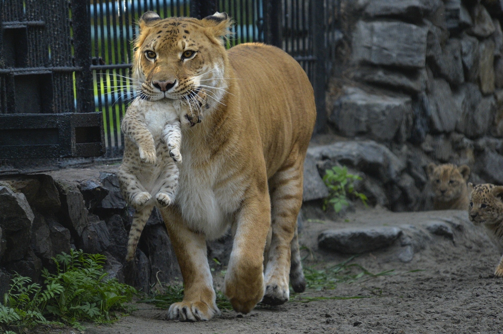 Lwiątko ze swoją matką lwicą w naturalnych warunkach życia