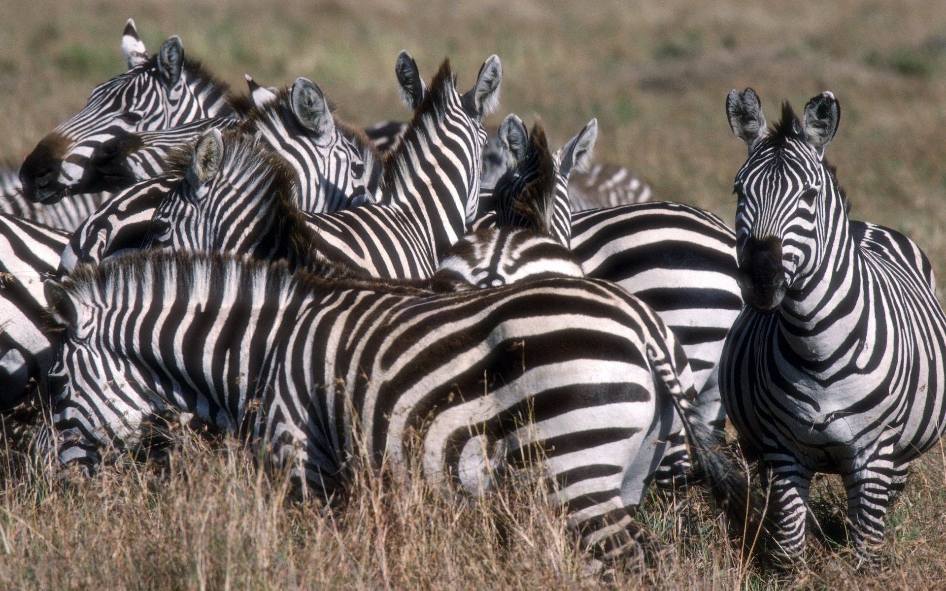 Pasiaste zebry ukryte w trawie