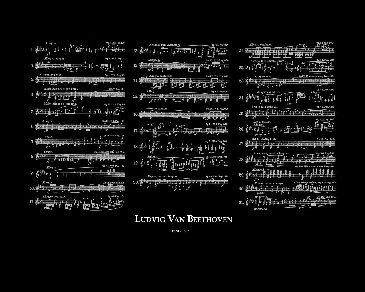 Pięciolinia Ludwiga van Beethovena na czarnym tle