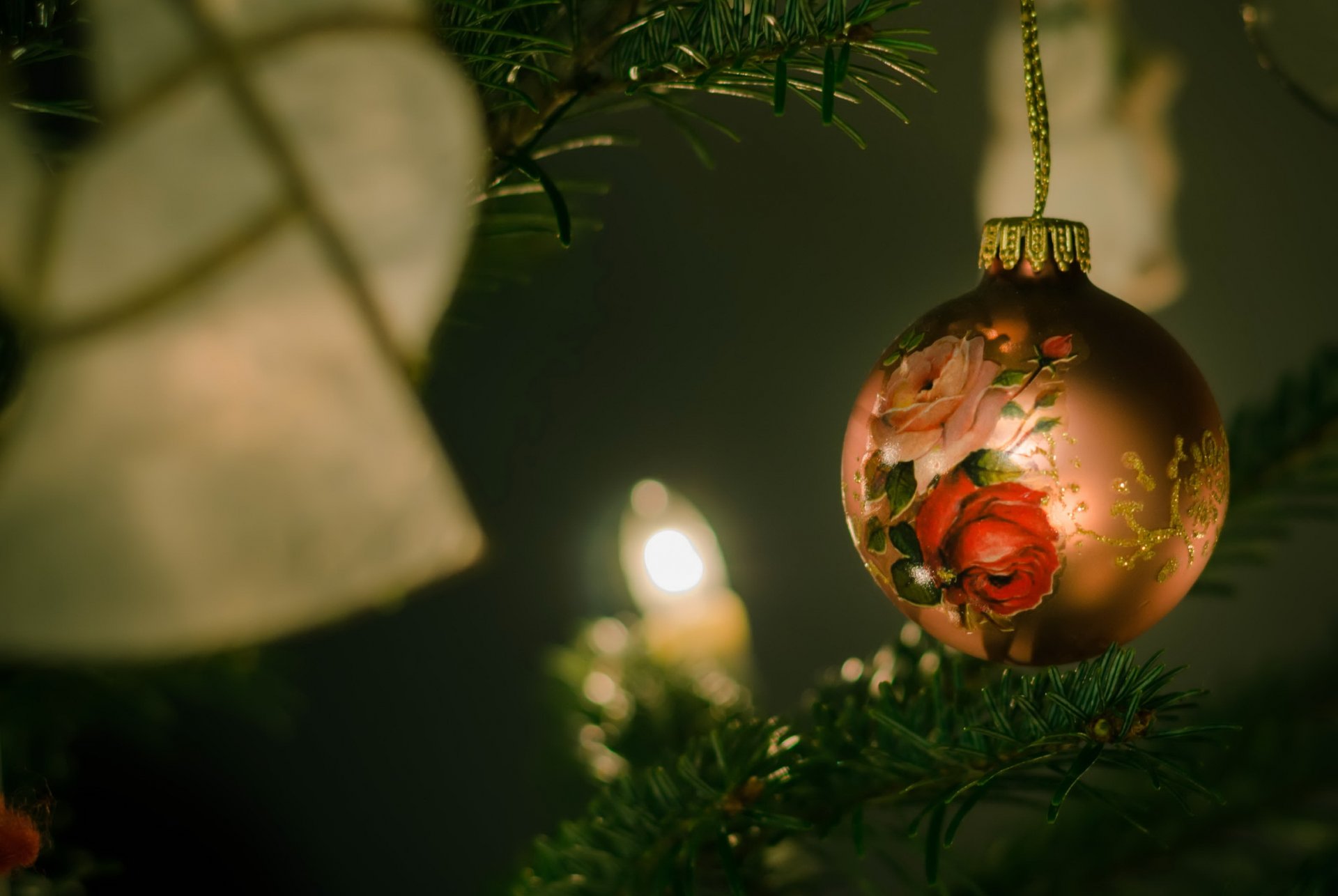 Złote i białe płonące świece obok pudełek na prezentyZłote i białe płonące świece obok pudełek na prezenty